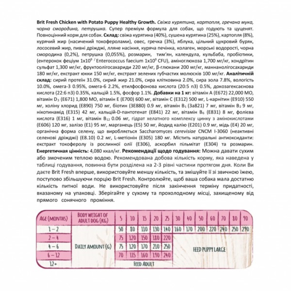 Вибираючи Brit Fresh Chicken/Potato Puppy, ви даруєте своєму улюбленцю не лише смачно-насичене харчування, але й здоровий старт у житті, що гарантує щасливий розвиток з любов'ю і турботою.