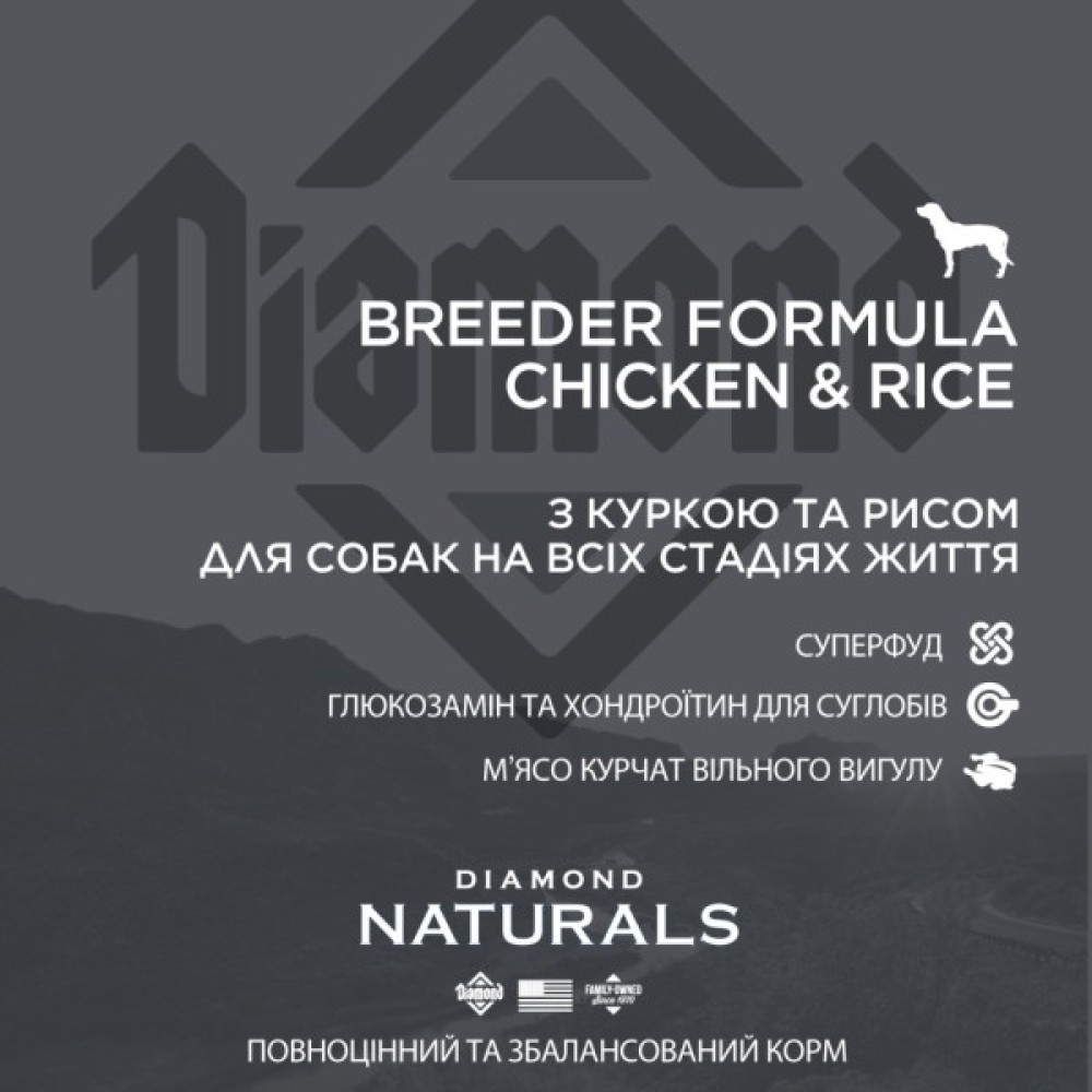 Сухий, корм, собак, Diamond, Naturals, Breeder, Formula, ChickenRice, 20, кг, 0074198615193