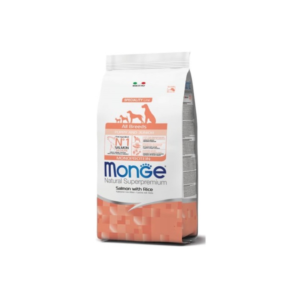 Сухий корм для собак Monge Dog All breeds Puppy&Junior зі смаком лосося та рису 800 г (8009470011266) — це еталон здорового та збалансованого харчування для ваших цуценят і юніорів будь-яких розмірів. Створений в Італії, цей корм належить до суперпреміум класу, що гарантує відсутність компромісів у якості та турботу про здоров'я вашого улюбленця від першого дня.