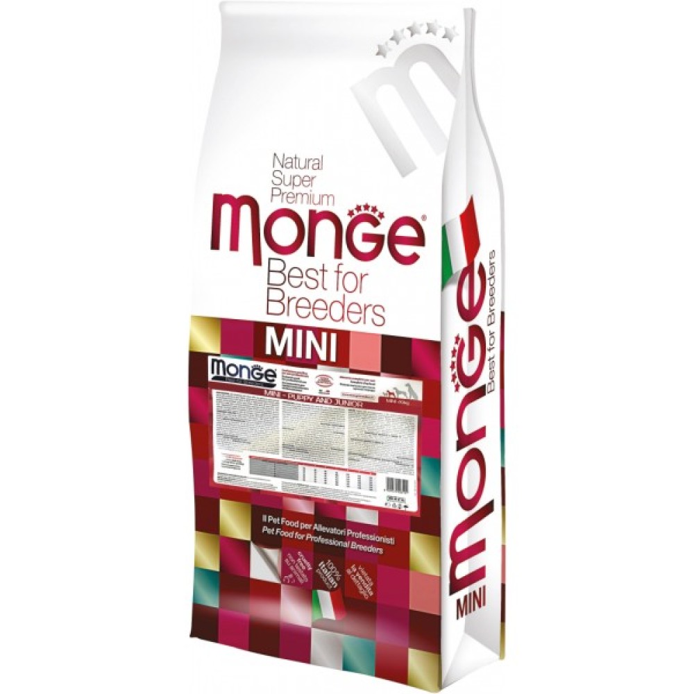 Сухий, корм, собак, Monge, Dog, Mini, PuppyJunior, зі, смаком, курки, та, рису, 15, кг, 8009470006101