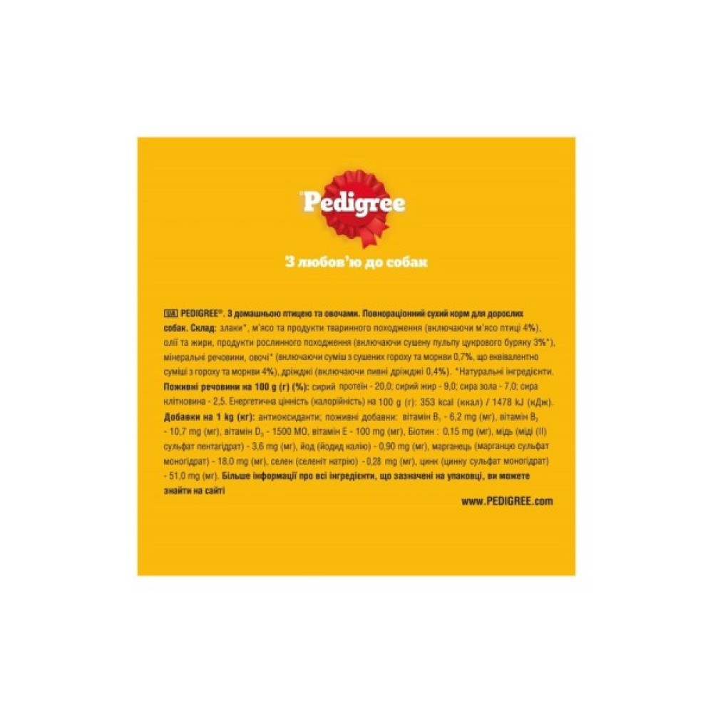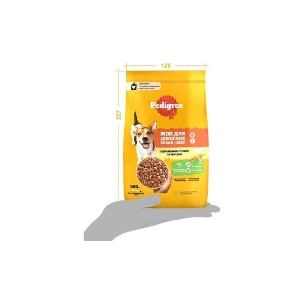 Сухий корм для собак Pedigree для малих порід з птицею та овочами - ідеальний вибір для здорового та збалансованого раціону вашого улюбленця. Призначений спеціально для дорослих собак маленьких порід, цей корм забезпечує всі необхідні поживні речовини для підтримання оптимального стану здоров'я та енергійності вашого чотирилапого друга.