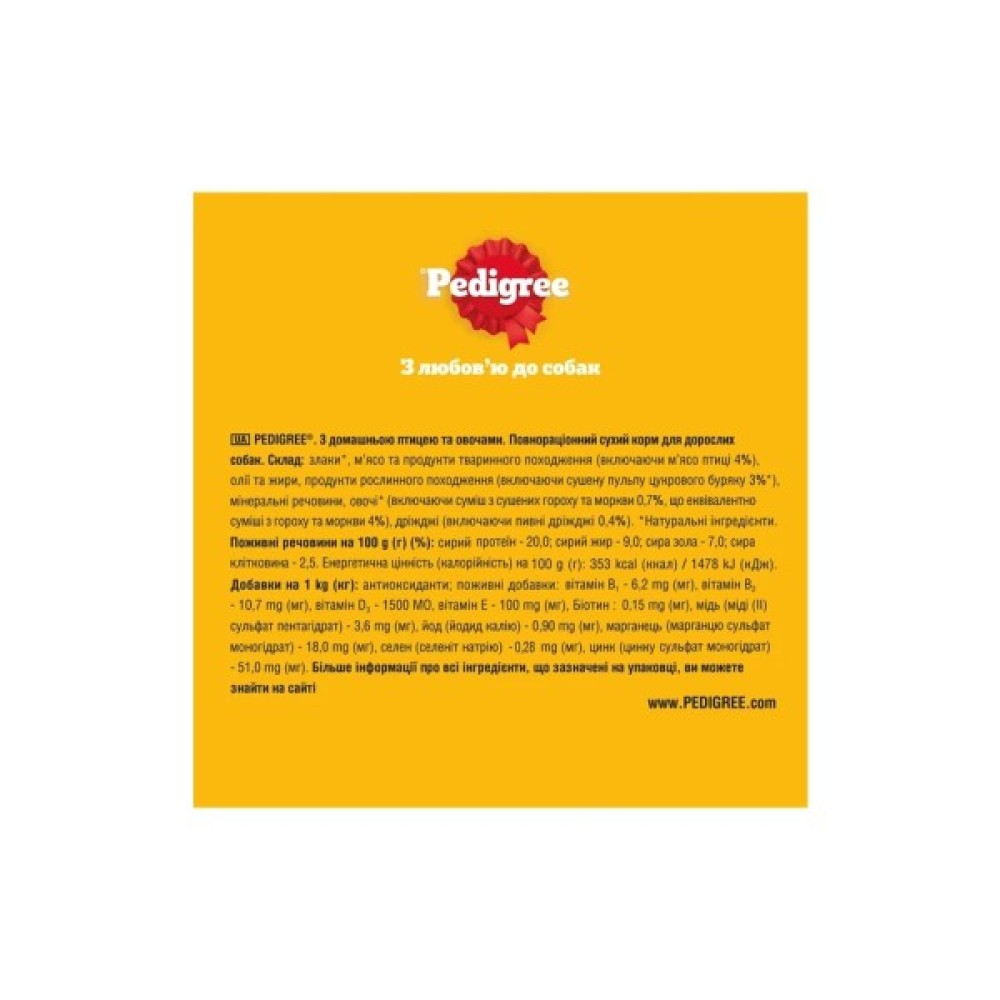 Сухий корм для собак Pedigree з птицею та овочами 2.6 кг — це ідеальне рішення для щоденного раціону вашого улюбленця. Розроблений спеціально для дорослих собак будь-якої породи, цей преміум клас корм забезпечить всі необхідні поживні речовини для збереження здоров'я та енергії вашого чотирилапого друга.
