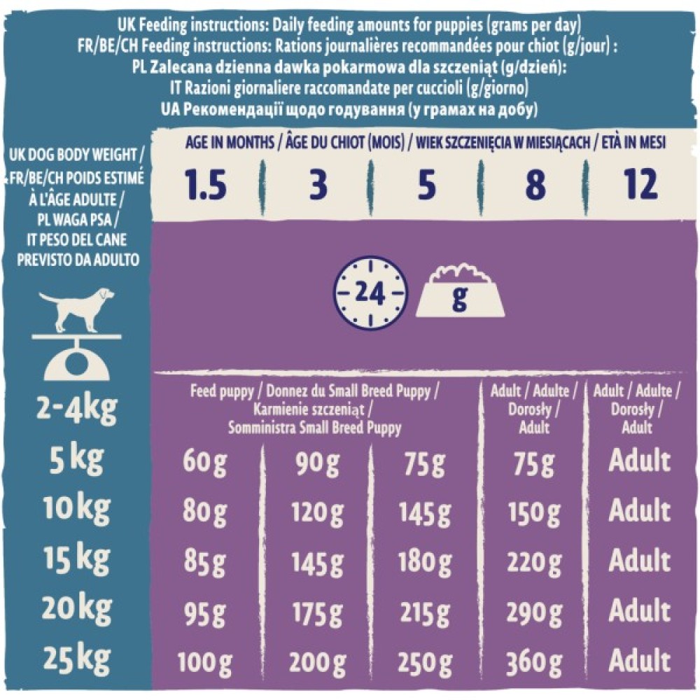 Корм Purina Dog Chow Puppy Lamb розроблений не лише для цуценят і юніорів, але й для вагітних і годувальних собак, підтримуючи їх здоров'я і активність. Природні пребіотики, включені до складу, сприяють здоровому травленню, а вітамін Е зміцнює імунітет, забезпечуючи собакам життєву силу від самого раннього віку. Тому цей корм є ідеальним вибором для опіку над чотирилапими різних розмірів – від маленьких до великих порід.