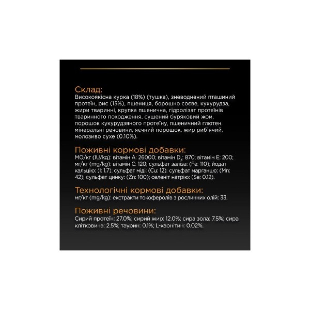 Сумка об'ємом 12 кг виготовлена в Італії та гарантує збереження свіжості продукту, що робить її практичною і зручною для тривалого використання. Забезпечте вашого улюбленця збалансованим харчуванням з Purina Pro Plan, інвестуючи в його здорове і щасливе життя.