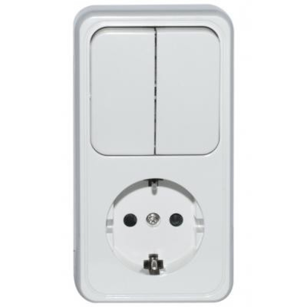Електровстановлювальне обладнання SVEN SE-65351, white (6438162010386) - блок двомісний: розетка із заземлюючими контактами і захисними шторками + вимикач подвійний. Особливості: можливість монтажу на різні поверхні: дерево, гіпсокартон, пластик і т. П; покращена конструкція клем для дротів; можливість введення проводів з будь-якого боку; захисні шторки від несанкціонованого попадання предметів.