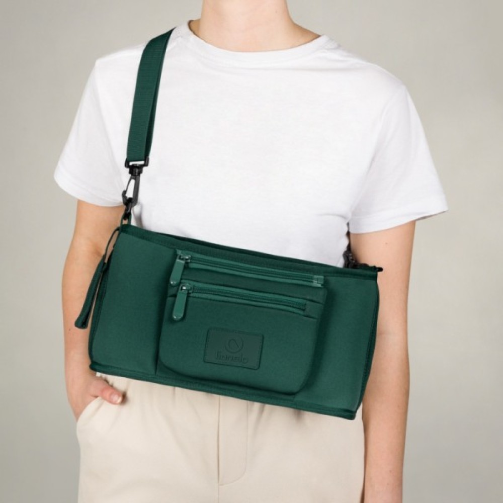 Практичне рішення для щоденних прогулянок із дитиною. Ви можете прикріпити її до рами будь-якого дитячого візка, що дасть вам легкий доступ до того, що вам потрібно будь-якої миті. Вона підходить для підгузків, вологих серветок та снеків для дитини, а для пляшечок добре підходять два внутрішні відділення. Це надійне місце для документів, телефону чи ключів. Сумка пошита з міцного та водонепроникного неопрену, який можна прати у пральній машині.