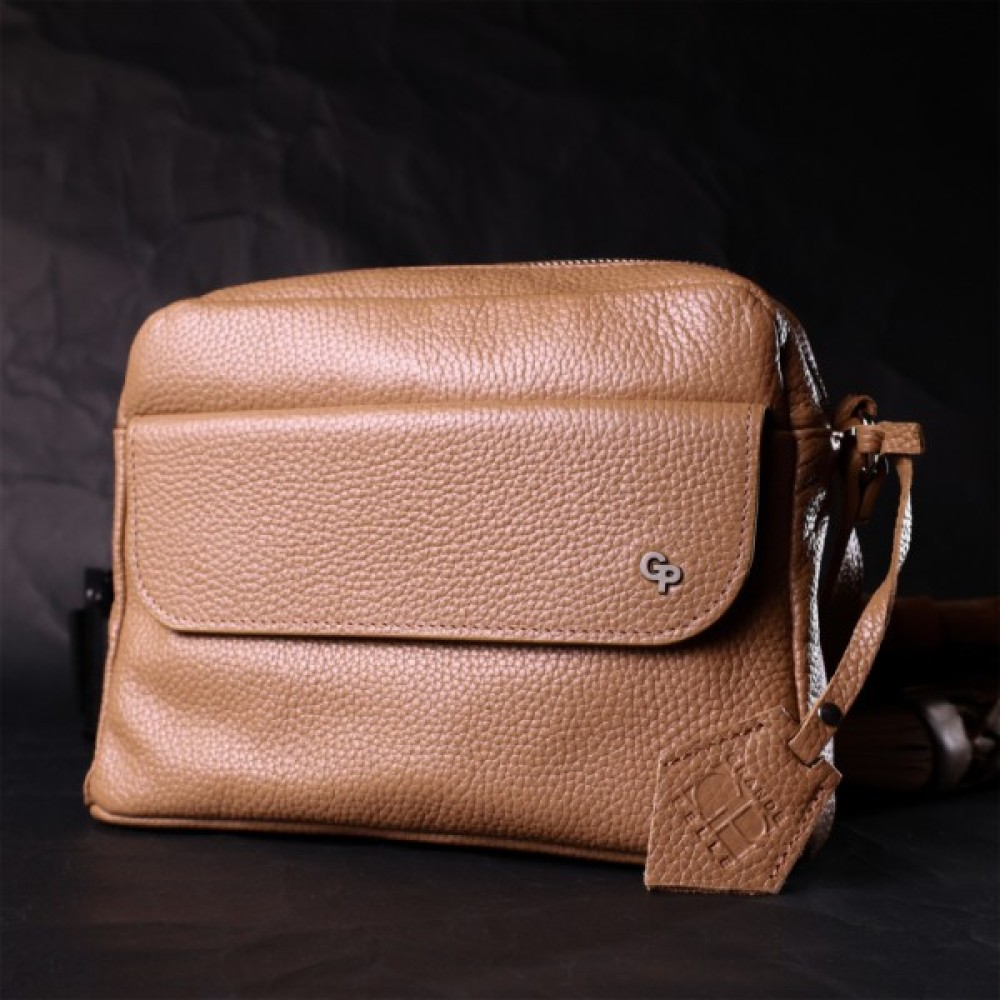 Сумка Grande Pelle Крос-боді з натуральної шкіри Бежева (11652)