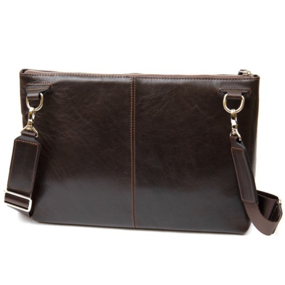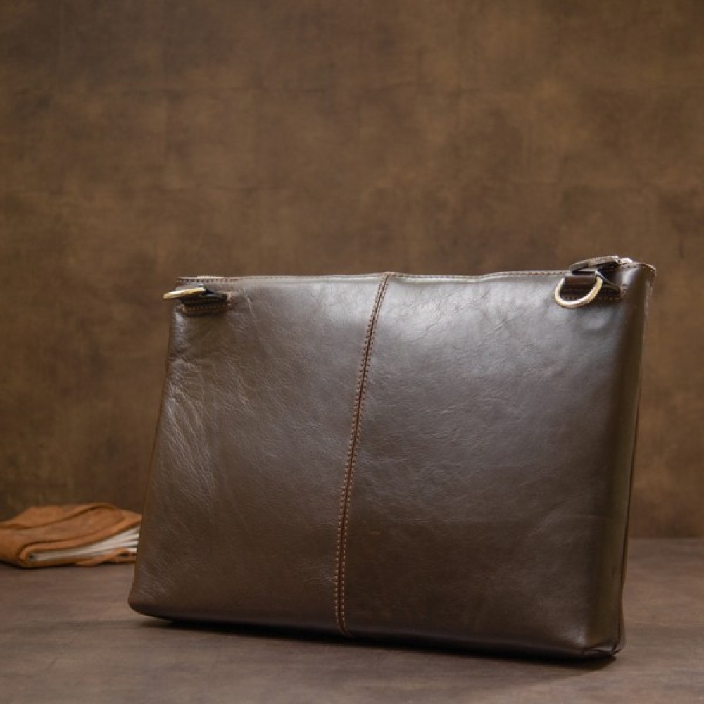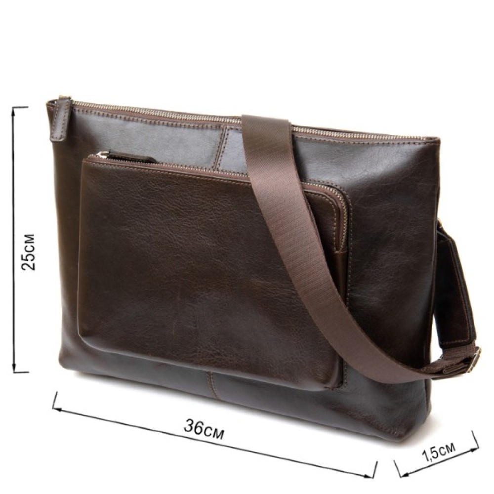 Добротна красива сумка для ноутбука в глянсовому коричневому кольорі. Виконана з натуральної високоякісної шкіри. Закривається сумка на міцну і надійну блискавку. Всередині є містке основне відділення і відділення на липучці для ноутбука. Папери формату A4 з легкістю помістяться в цей аксесуар.