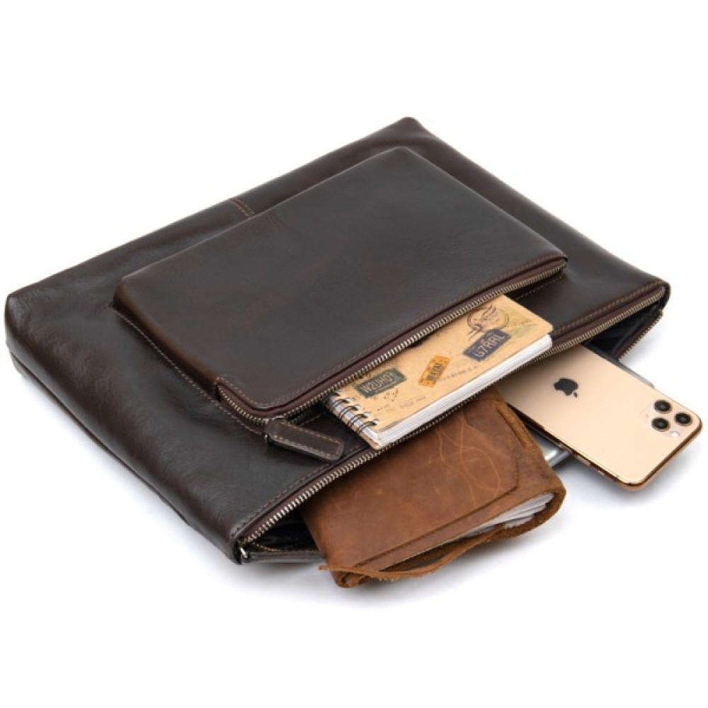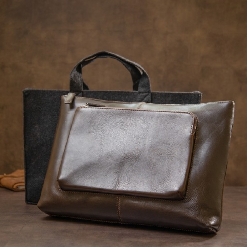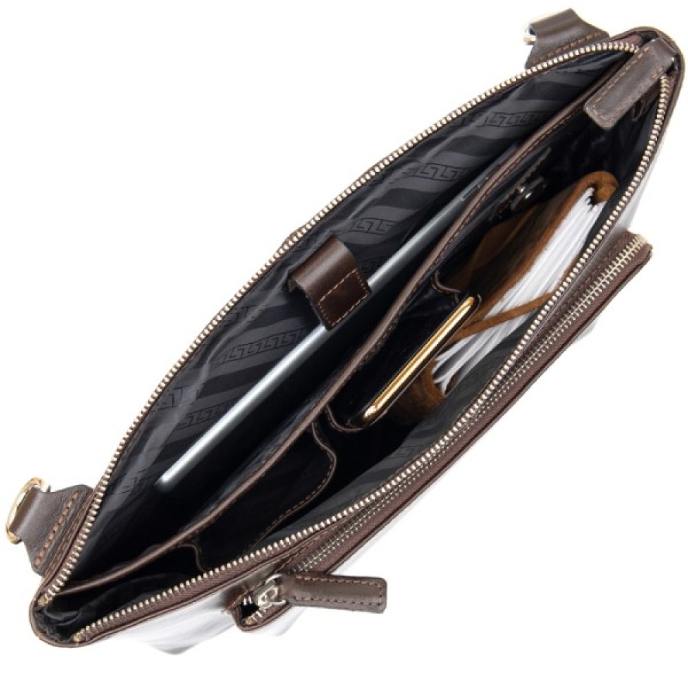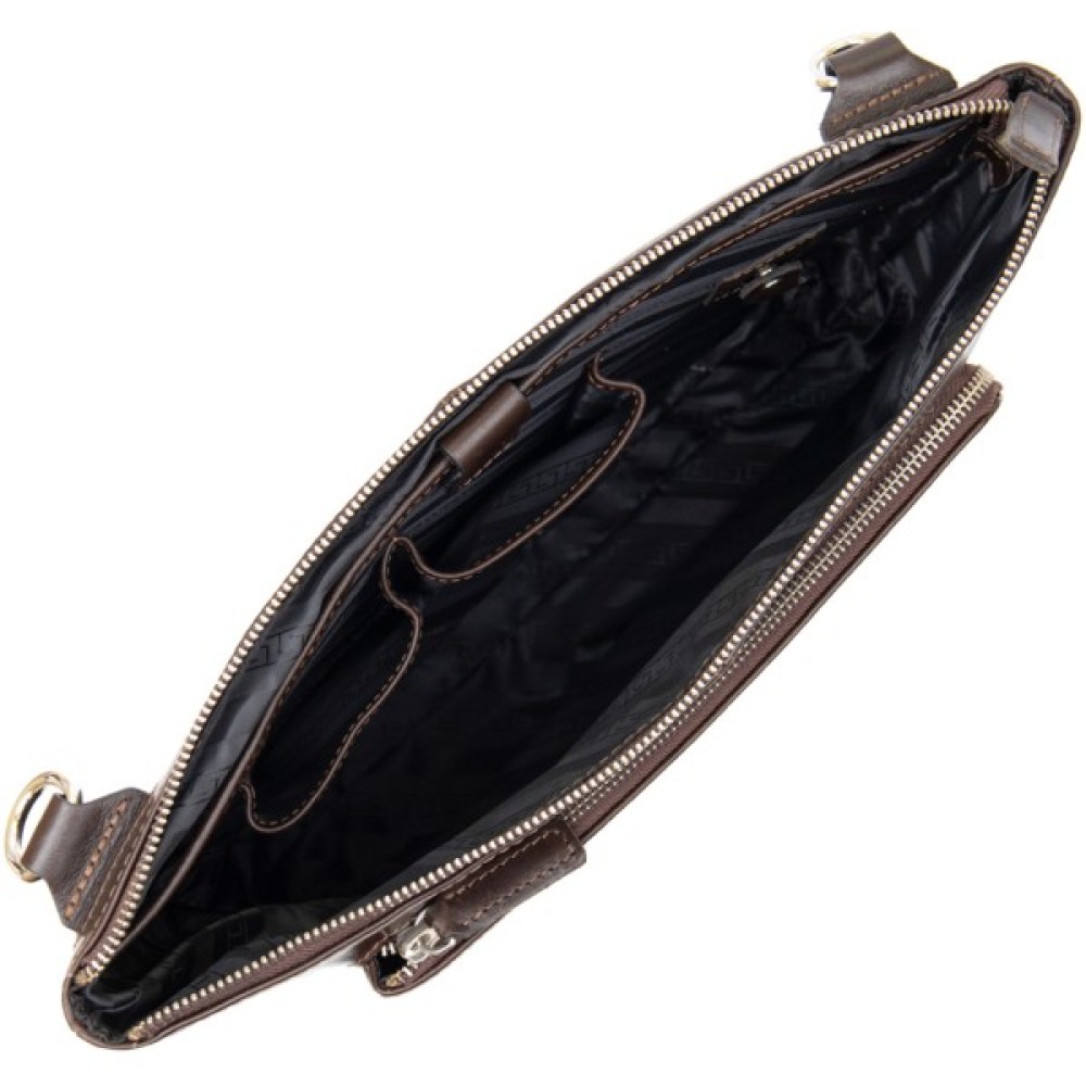 Добротна красива сумка для ноутбука в глянсовому коричневому кольорі. Виконана з натуральної високоякісної шкіри. Закривається сумка на міцну і надійну блискавку. Всередині є містке основне відділення і відділення на липучці для ноутбука. Папери формату A4 з легкістю помістяться в цей аксесуар.