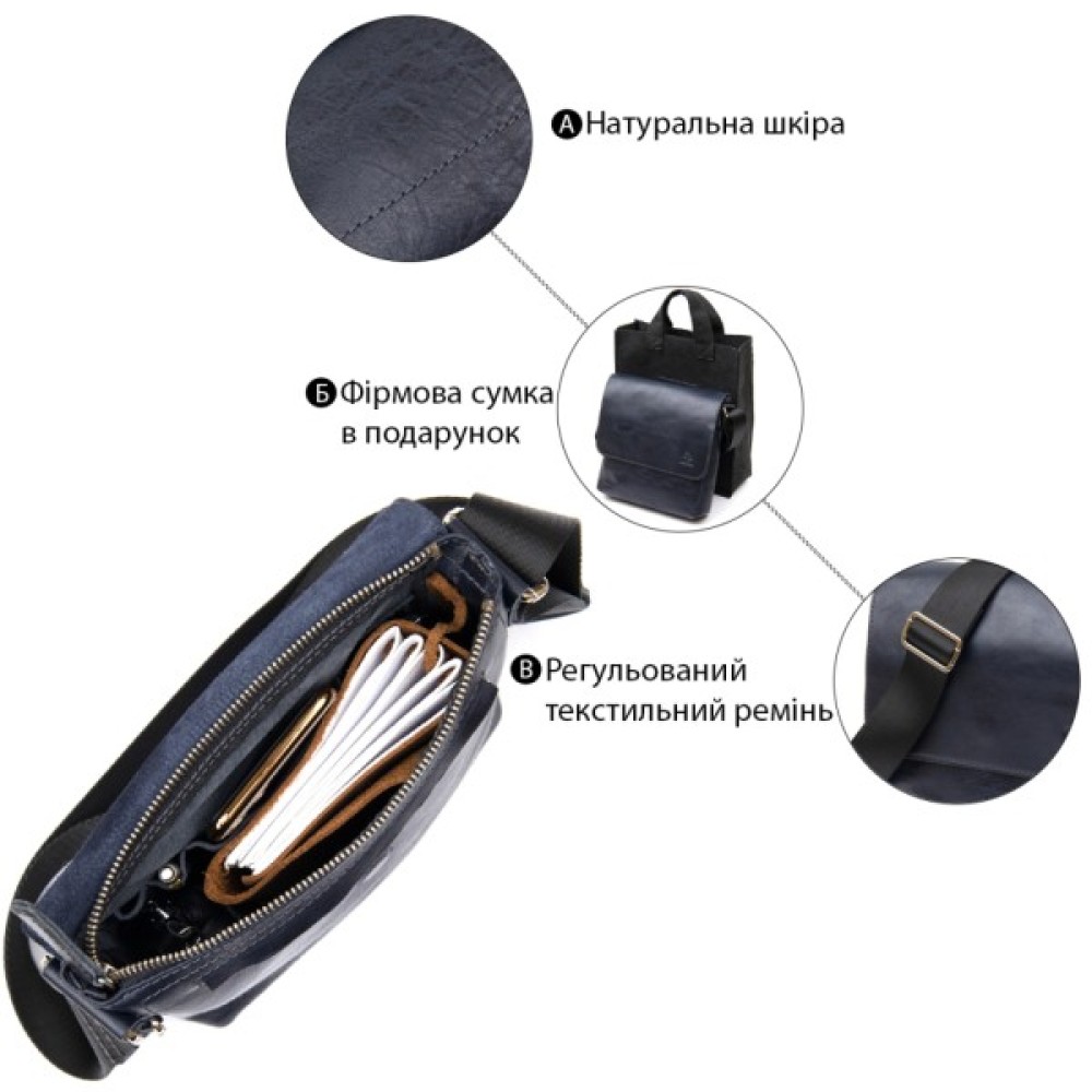 Сумка, Grande, Pelle, Шкіряна, чоловіча, Темносиня, 11433