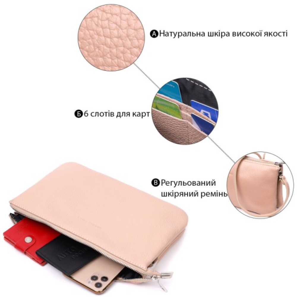 Цікавий жіночий трендовий клатч із крупнозернистої італійської натуральної шкіри. Модель ідеально підкреслить ваше почуття стилю та доповнить образ. Аксесуар виглядає дуже витримано та зі смаком. Клатч має велику кількість різноманітних кишень та відділень. Якщо ви шукаєте універсальну сумку на кожен день чи вечір – це чудовий варіант. Буде ідеальним подарунком для близької людини. Модель упакована у фірмовий повстяний мішок.