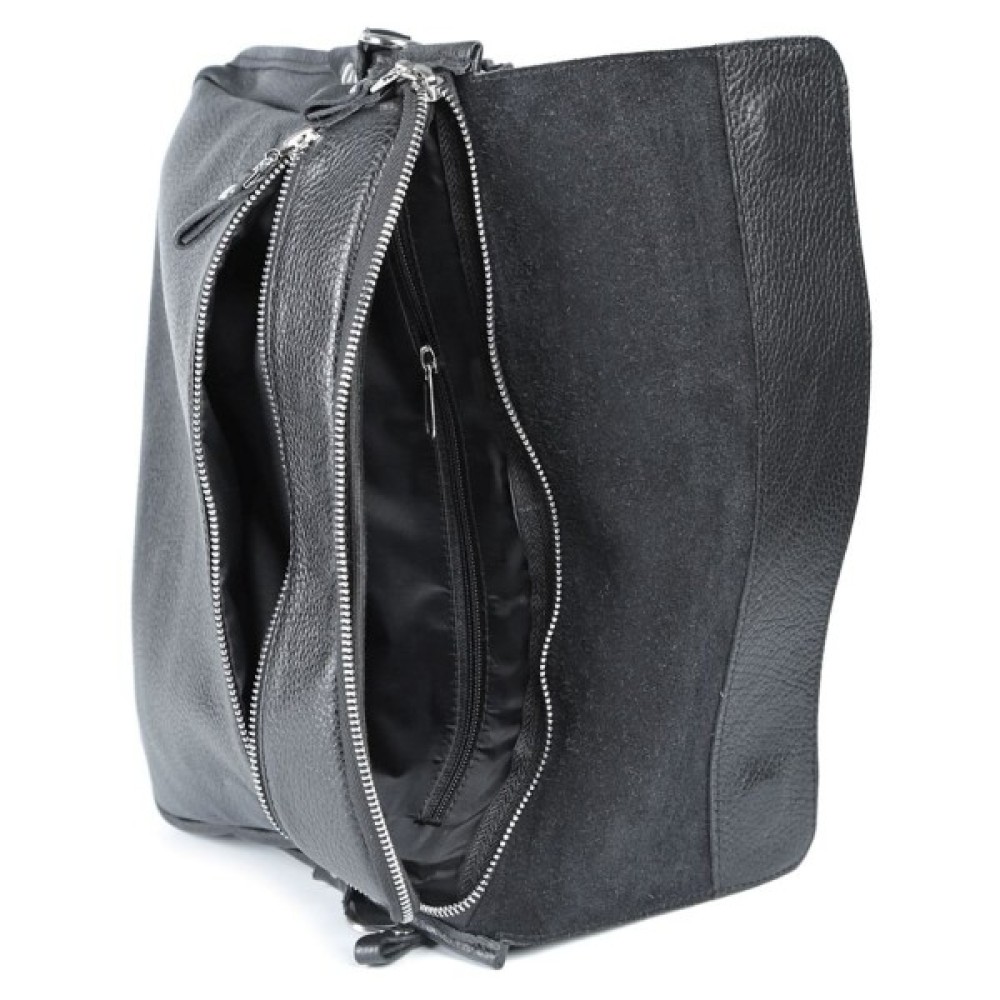 Сумочка з оригінальним дизайном, вона поділена на три автономних відділення. Два відділення закриваються клапанами з магнітами, а під ними - на блискавку. Відділення, яке знаходиться між двома основними, закривається на магнітну застібку.