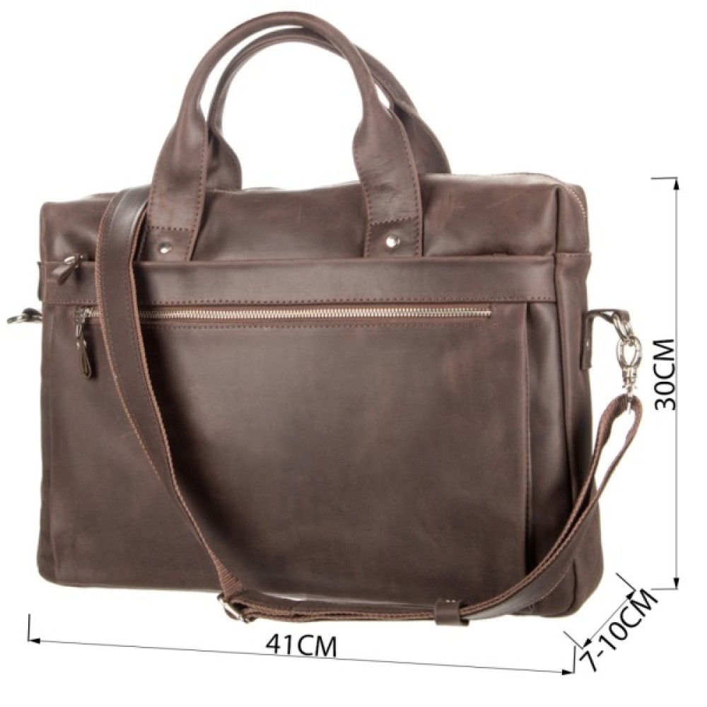 Міцна чоловіча сумка з вінтажної шкіри високої якості, яку ще називають crazy horse або просто crazy. Для цієї шкіри характерні потертості, штучні подряпини і неоднорідність забарвлення. Саме завдяки цьому вироби з такої шкіри довше зберігають презентабельний вигляд.
