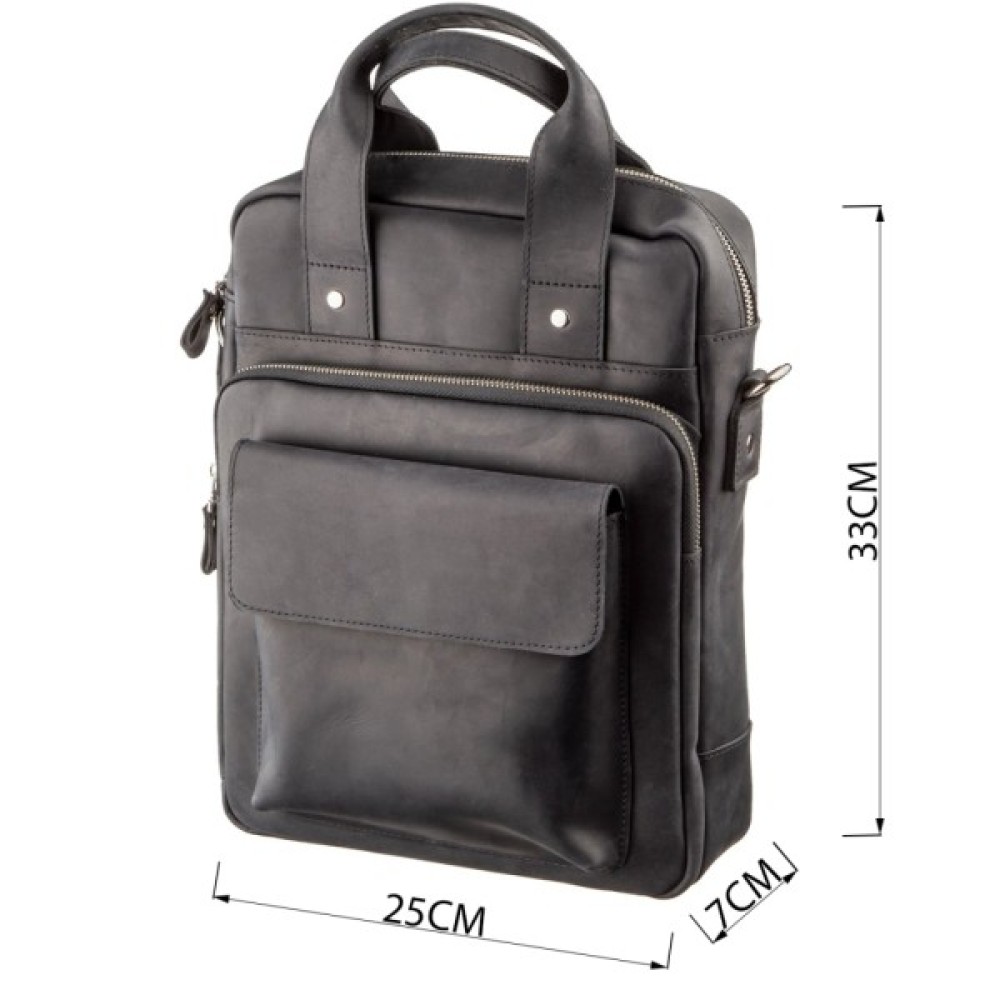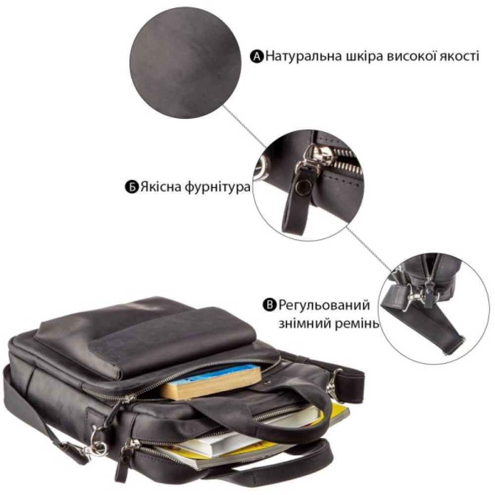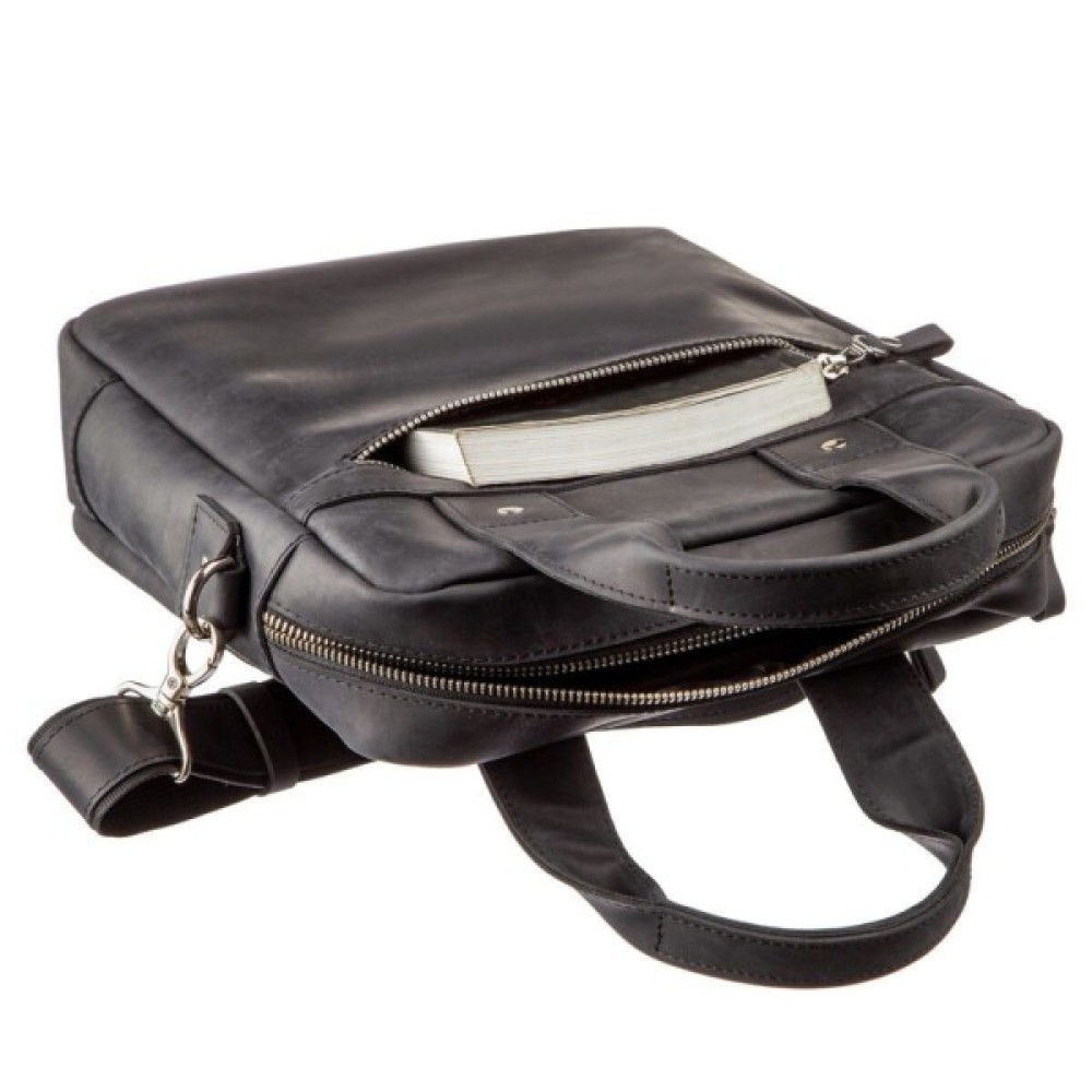 Сумка з класичним дизайном під А4 від вітчизняного виробника. Аксесуар виконаний зі шкіри Crazy horse, яка має вінтажний вигляд. Згодом, на такій шкірі можуть з'явитися потертості, що додають їй ефекту старовини.