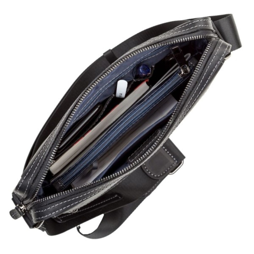 Всередині: кишеня-перегородка на блискавці, кишеня для телефону, відділення для ручок і дрібниць, тримач для ключів, відділення з ущільненою перегородкою для планшета.