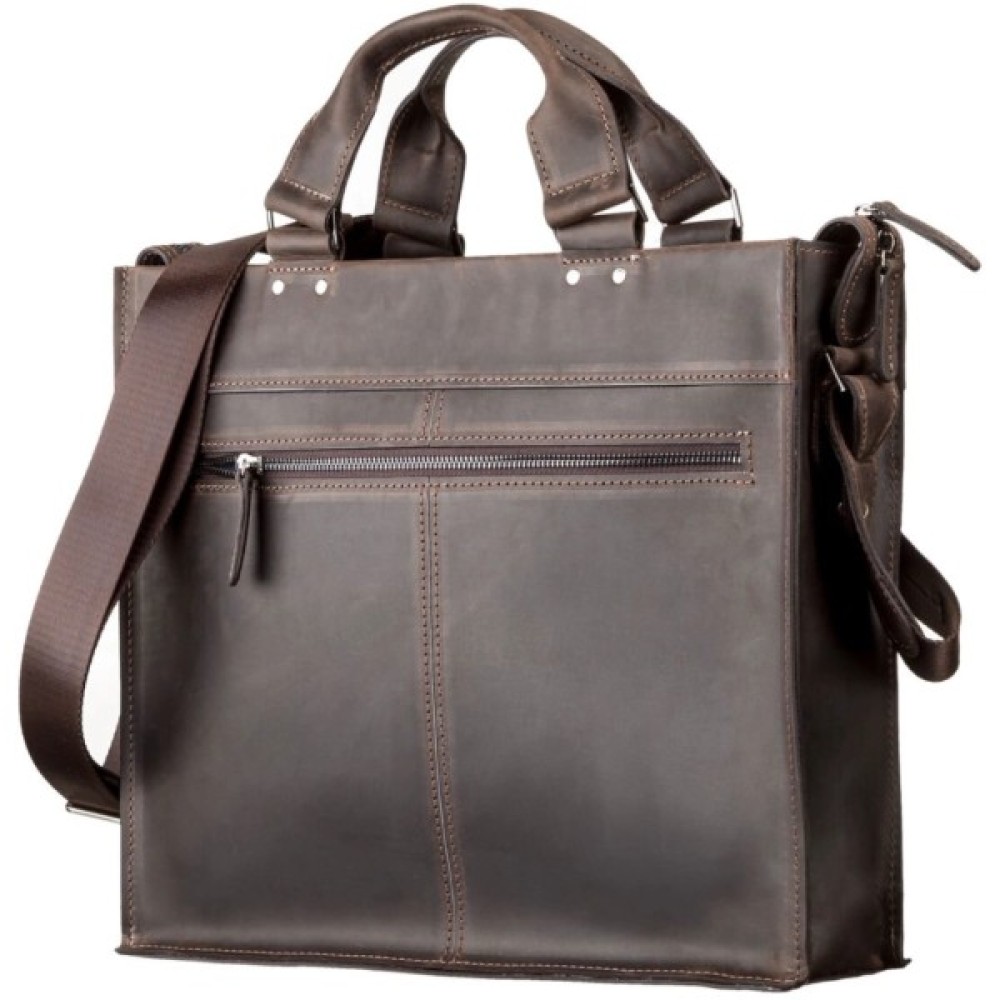 Чоловіча сумка-портфель з двома зручними ручками, виконана з натуральної вінтажної шкіри. Характерні ознаки матеріалу: неоднорідність забарвлення та потертості, що надають виробу вишуканого та індивідуального вигляду.