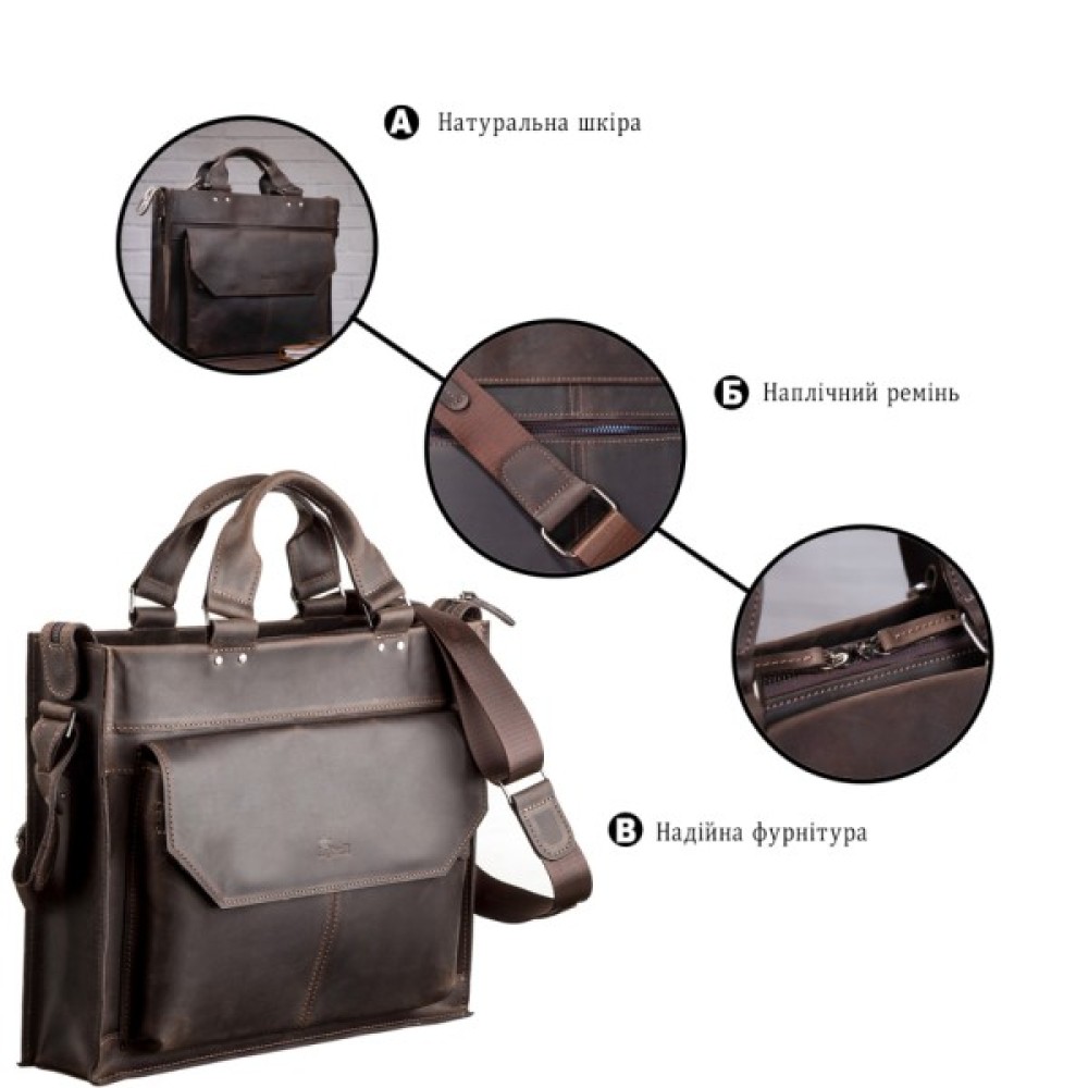 Сумка призначена для повсякденного використання та дозволяє носити папку з документами та особисті речі.