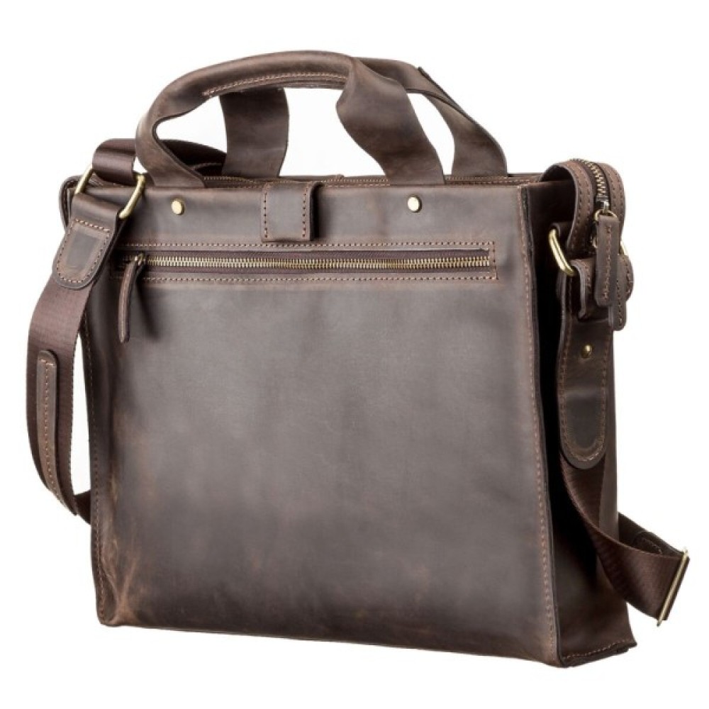 Стильна, сучасна чоловіча сумка формату-А4, з двома зручними ручками, для повсякденного використання, що дозволяє носити з собою папку з документами, особисті речі. Аксесуар виконаний з натуральної вінтажної шкіри, характерними ознаками якої є: неоднорідність забарвлення і потертості, які надають виробу вишуканого, індивідуального вигляду.
