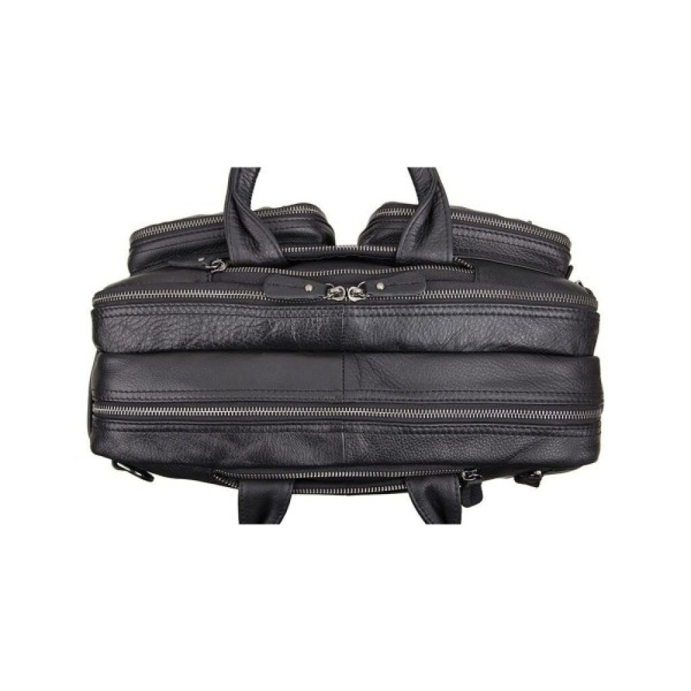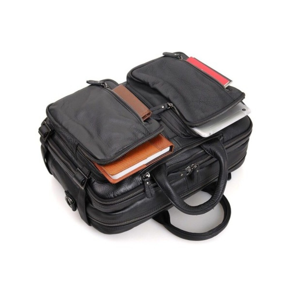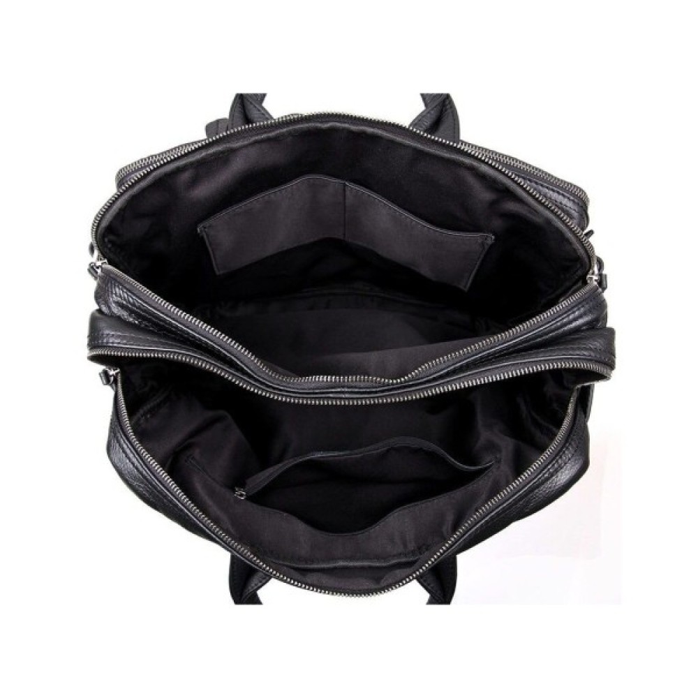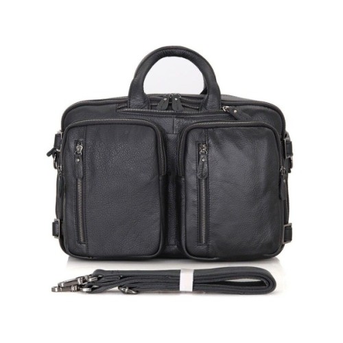 на тильній стороні кишеня на блискавці; дві шкіряні ручки; знімний регульований плечовий ремінь; чотири кишені на блискавці, на лицьовій стороні