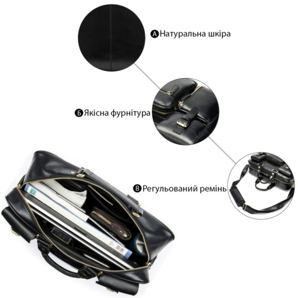 Функціоналом цієї сумки можна позаздрити. Такий вибір кишень вразить навіть найвибагливішого клієнта. Оптимальний варіант в дорогу або для ручної поклажі в літак. Сумка має потертості під ефект старовини, що надає їй особливого шарму. Підійде для чоловіків і для жінок. Модель упакована в тканинний чохол. Безпрограшний варіант для подарунку близькій людині. Ви можете носити її як за ручки, так і на плечі за допомогою міцної ручки.