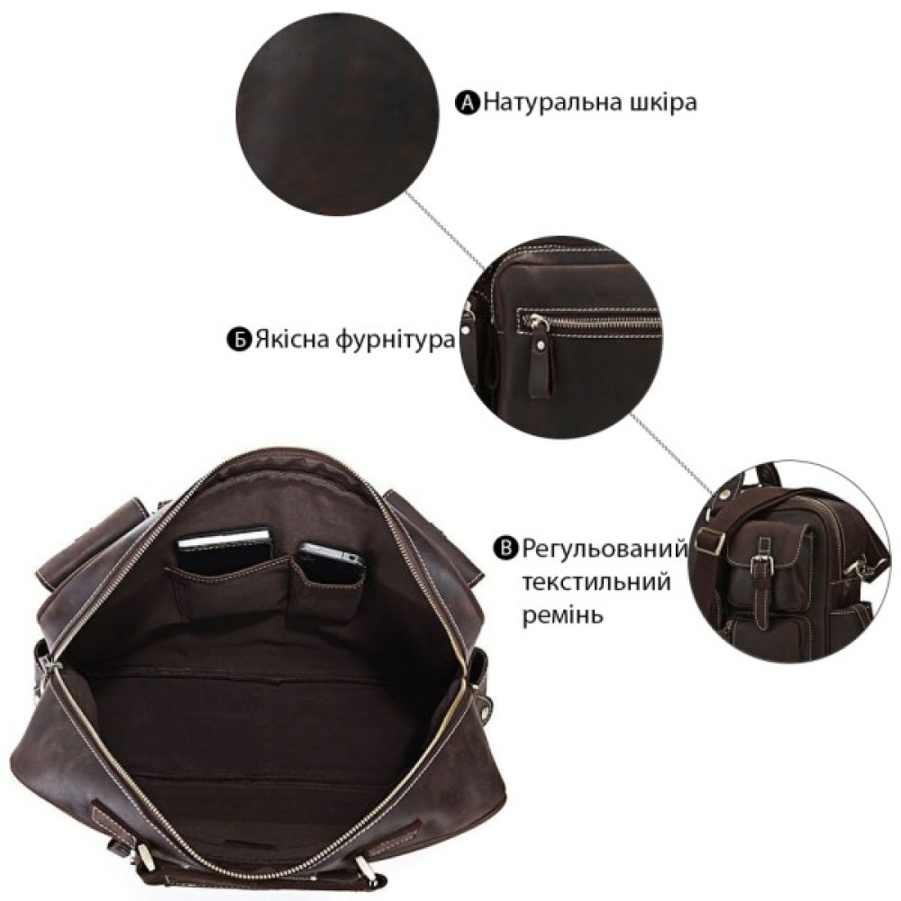 Функціоналом цієї сумки можна позаздрити. Такий вибір кишень вразить навіть найвибагливішого клієнта. Оптимальний варіант для подорожей або для ручної поклажі в літак.