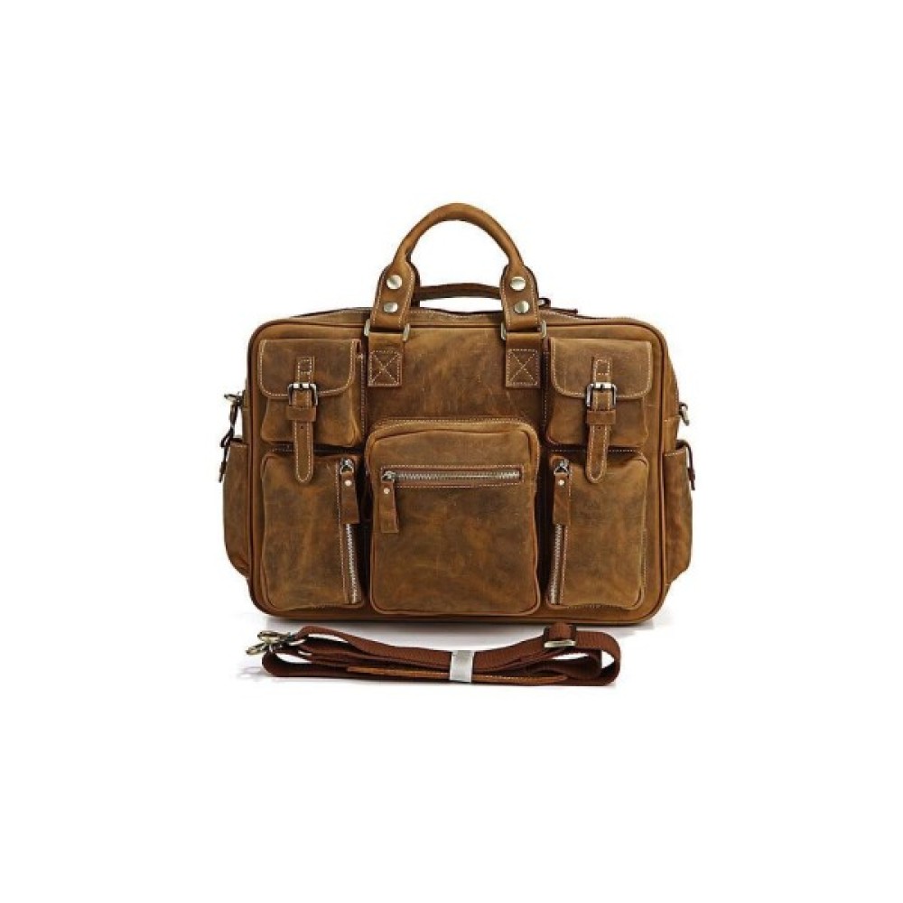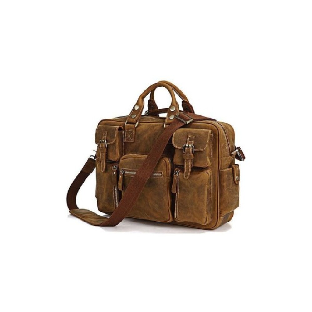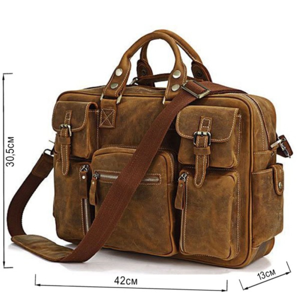 Яскрава оригінальна сумка для чоловіків дуже красивого коричневого кольору з безліччю кишень, в яких знайдеться місце для всього, що тільки можна придумати. Цей аксесуар дійсно виглядає стильно і неординарно, з ним Ви ніколи не загубитеся в натовпі.
