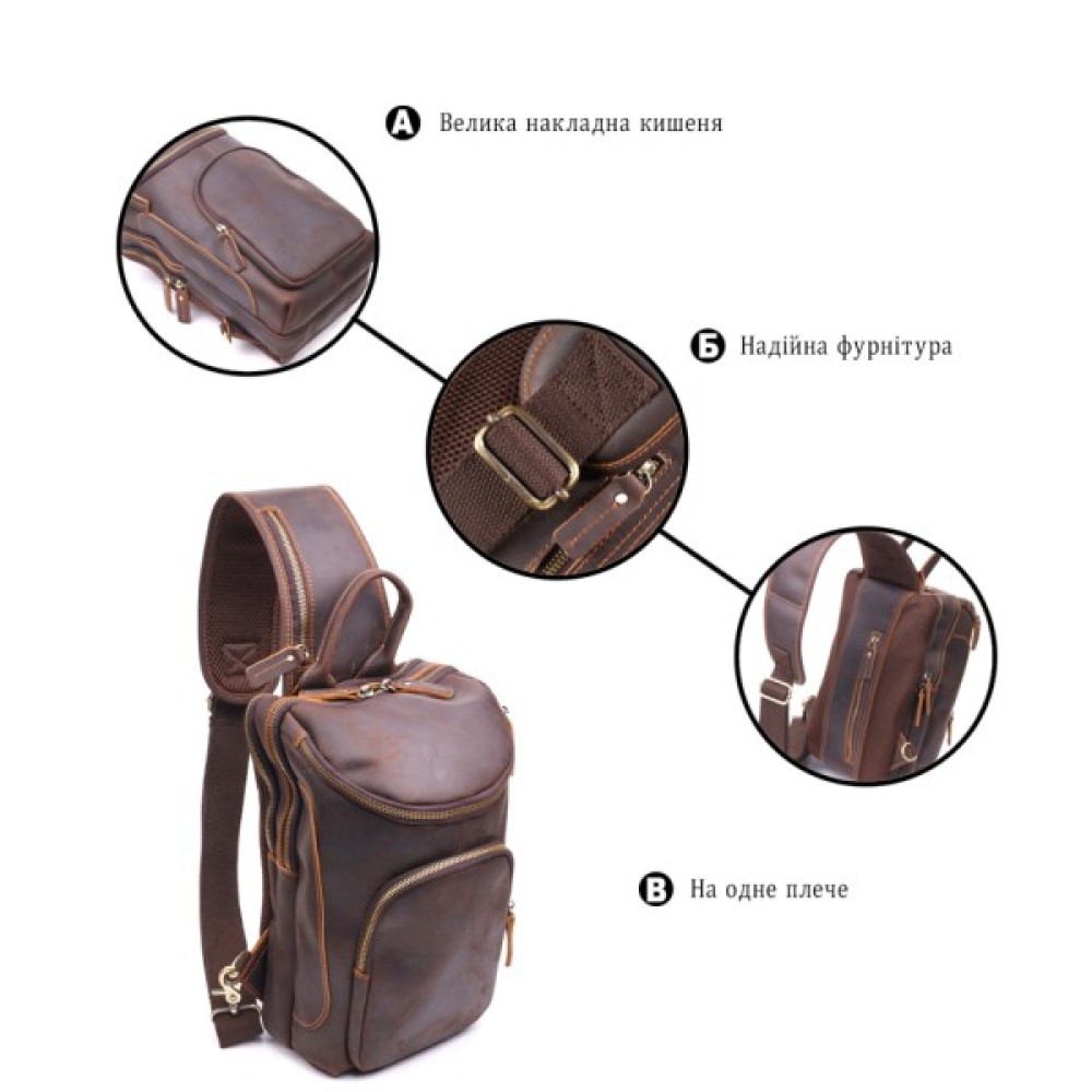 Модель: Вінтажна чоловіча через плече з натуральної шкіри