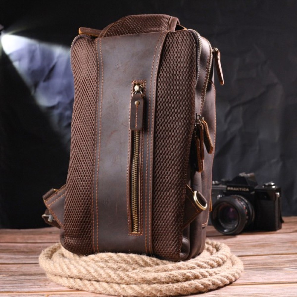 Практична шкіряна сумка через плече з якісної вінтажної шкіри.