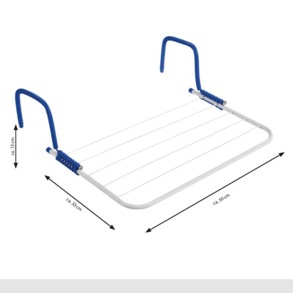 Навісна сушарка для білизни Casa Si Padua призначена для швидкої сушки невеликої кількості речей коло радіатора опалення, або на балконі за вікном. Два металевих гачки в пластиковому кожусі рухаються вздовж направляючих, дозволяючи встановити бажаний винос сушарки від поверхні батареї, вікна чи стіни. Повертаючи гачки вгору перпендикулярно до направляючих, замок, що блокує пересування, вступає в дію.