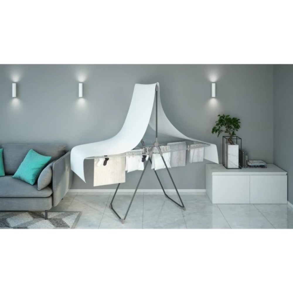 Сушарка для білизни підлогова Colombo Titano (ST1000) - це поєднання сучасних технологій та витонченого італійського дизайну. Шарнірний механізм дозволяє використовувати сушарку в кількох положеннях, враховуючи індивідуальні потреби. Верхня рама служить тримачем для плічок, а також може бути використана для сушіння постільної білизни чи об'ємних речей. За необхідності її можна легко скласти. Сушарка має дві основні секції, які можуть складатися незалежно одна від одної, забезпечуючи гнучкість у використанні. Каркас даної моделі виготовлений з легкого та міцного алюмінію. Робочі секції виготовлені з нержавіючої сталі INOX, яка не піддається корозії та атмосферним явищам, гарантуючи тривалий термін експлуатації. Ніжки обладнані пластиковими накладками для захисту підлоги та коліщатами для легкості переміщення сушарки.