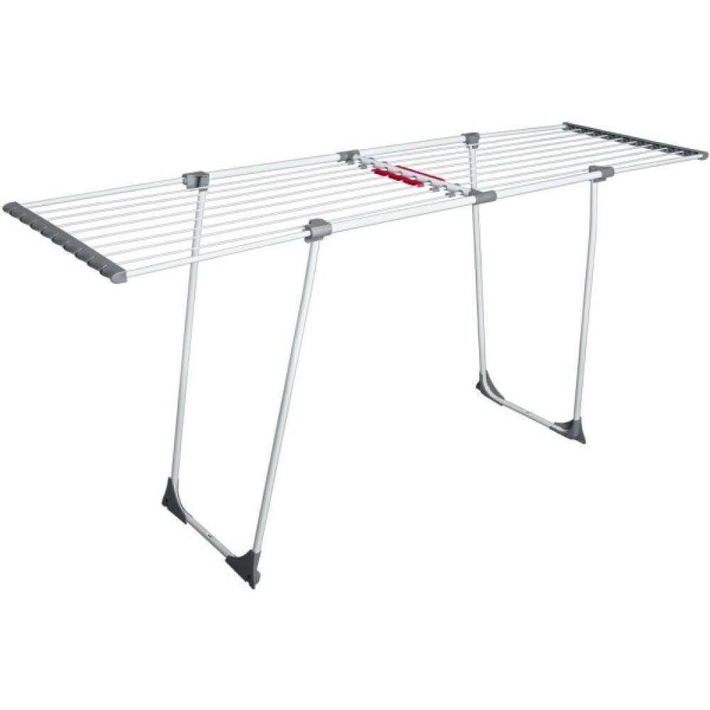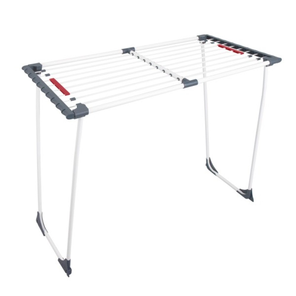 Металева сушарка для білизни MAGIC — це інноваційна модель, адже замість струн вона має телескопічні трубки, які не тільки забезпечують додаткову надійність, але й сприяють тому, щоб білизна висихала рівномірно, без загинів. Крім того, додаткові насадки для сушіння шкарпеток та інших дрібних речей дозволяють розмістити ще більше білизни на сушарку одночасно. Сушарка має універсальну та зручну в користуванні розсувну основу. Завдяки спеціальним насадкам можна без зайвих зусиль регулювати довжину основи від 110 см до 200 см. U-подібні ніжки забезпечують додаткову компактність й зручність у зберіганні. Вони унеможливлюють непередбачуване складання конструкції, не потребуючи жодних додаткових елементів для блокування чи фіксації положення. Додатковою перевагою є наявність пластикових колес, що суттєво полегшує пересування сушарки. До того ж, захисні пластикові опори протидіють затиранню покриття. Загальна довжина усіх струн складає 20 м. Товар відповідає умовам європейської сертифікації.