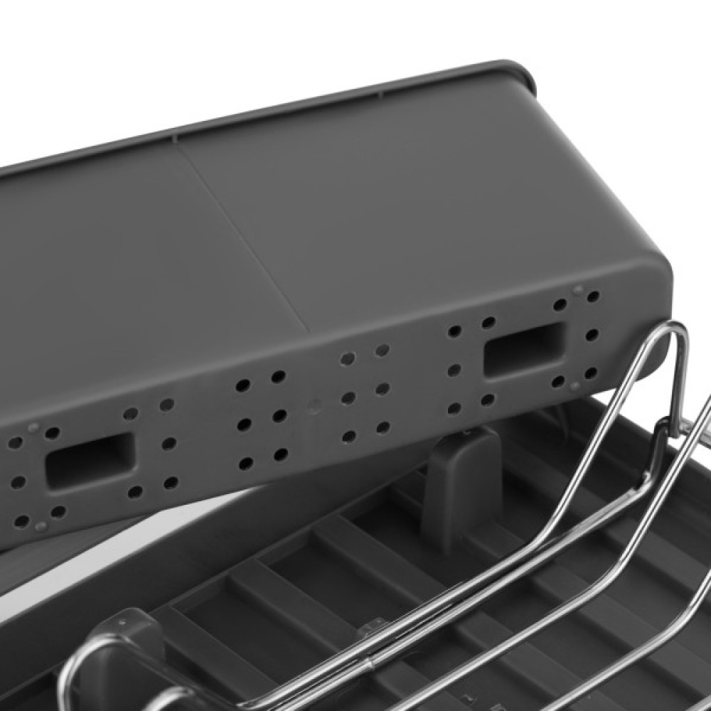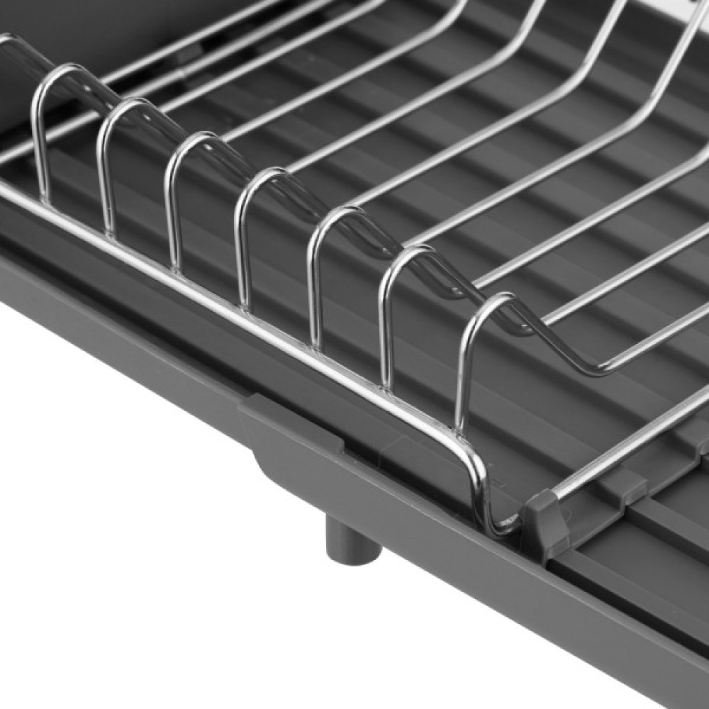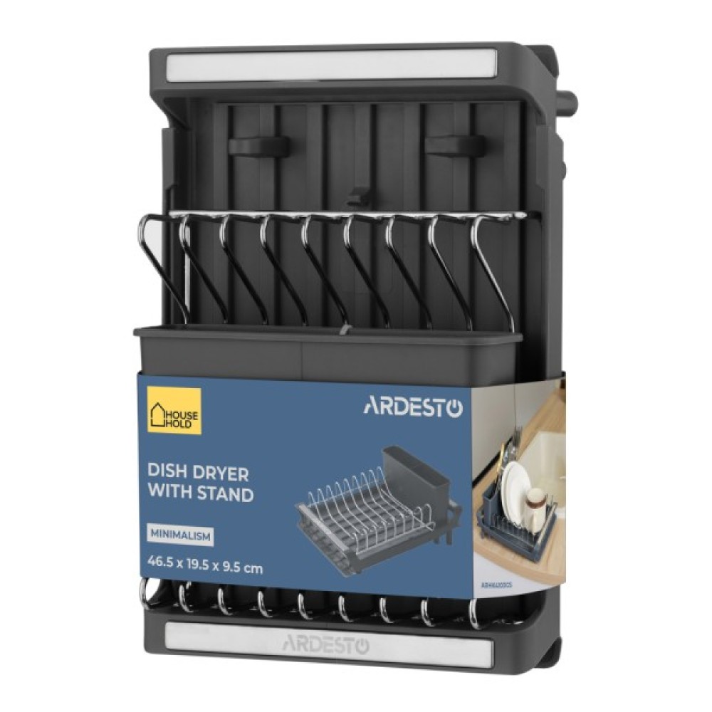 Сушарка для посуду ARDESTO серії Minimalism поєднує функціональність і практичність. Вона має зручні відділення, що забезпечує рівномірне стікання води на підставку, виготовлену з міцного та зносостійкого пластику. Бортики надійно фіксують тарілки. Сушарку розміром 46,5 × 19,5 × 9, 5 см виготовлено з якісного металу, який вирізняється стійкістю до впливу зовнішніх факторів. Ця модель стильного темно-сірого кольору –зручне та практичне рішення для будь-якої кухні.