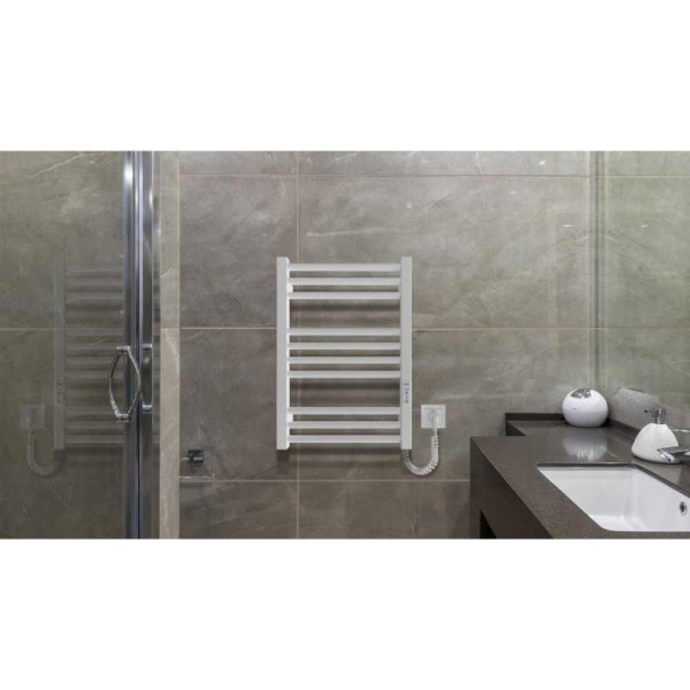 Оснащена таймером-регулятором. Має приховане підключення в комплекті. Варіанти покриття: Чорний мат, Білий мат. Має 10 ребер та стояки з квадратної труби. Температурні режими таймера-регулятора: 40°C, 45°C, 50°C. Варіанти часу роботи: 3, 6 годин та постійний нагрів.