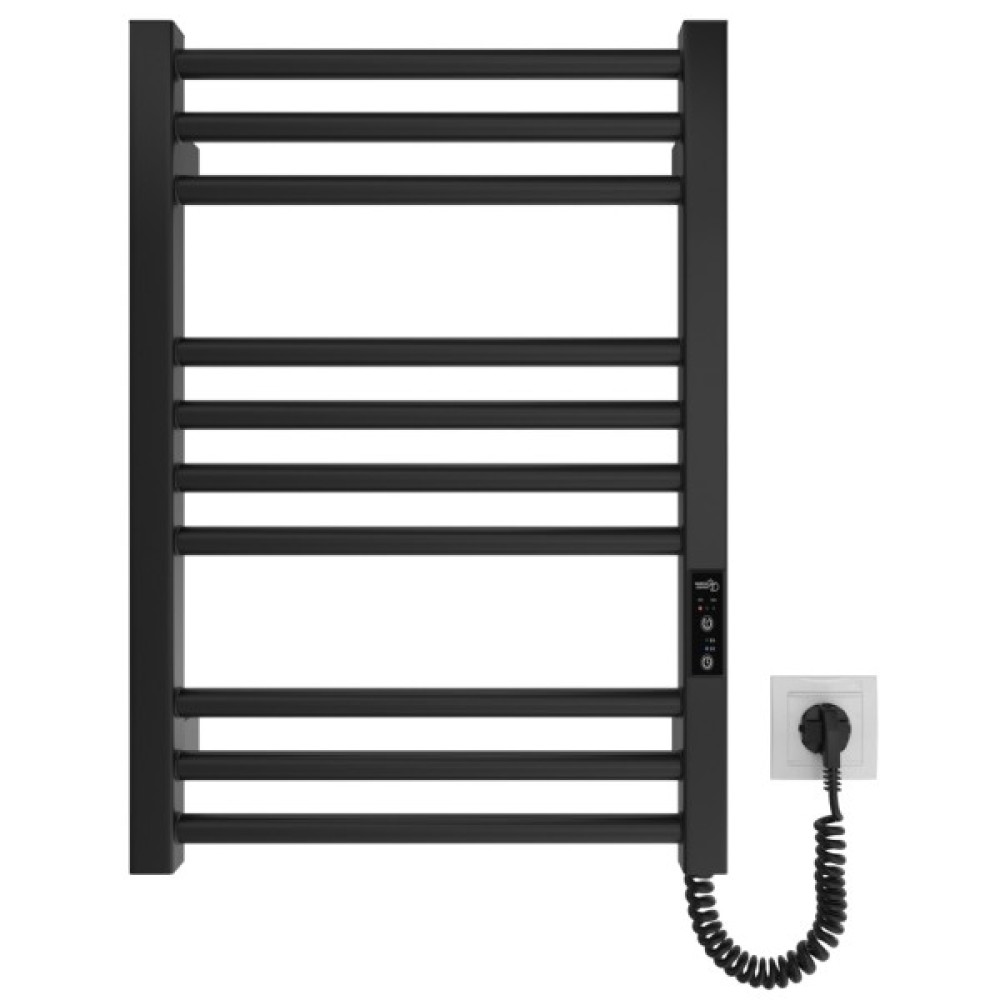 Оснащена таймером-регулятором. Має приховане підключення в комплекті. Варіанти покриття: Чорний мат, Білий мат. Має 10 ребер та стояки з квадратної труби. Температурні режими таймера-регулятора: 40°C, 45°C, 50°C. Варіанти часу роботи: 3, 6 годин та постійний нагрів.