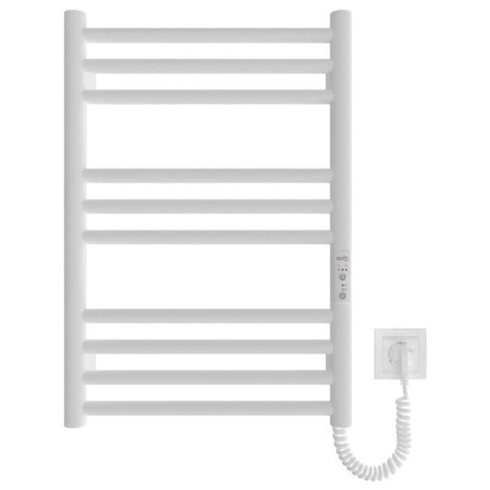Електрична рушникосушарка HF Greenwich 570×530. Оснащена таймером-регулятором. Включає в себе приховане підключення. Має 10 ребер та стояки з круглої труби. Варіанти обробки: Чорний мат, Білий мат. Температурні режими таймера-регулятора: 40°C, 45°C, 50°C. Варіанти часу роботи: 3, 6 годин та постійний нагрів.