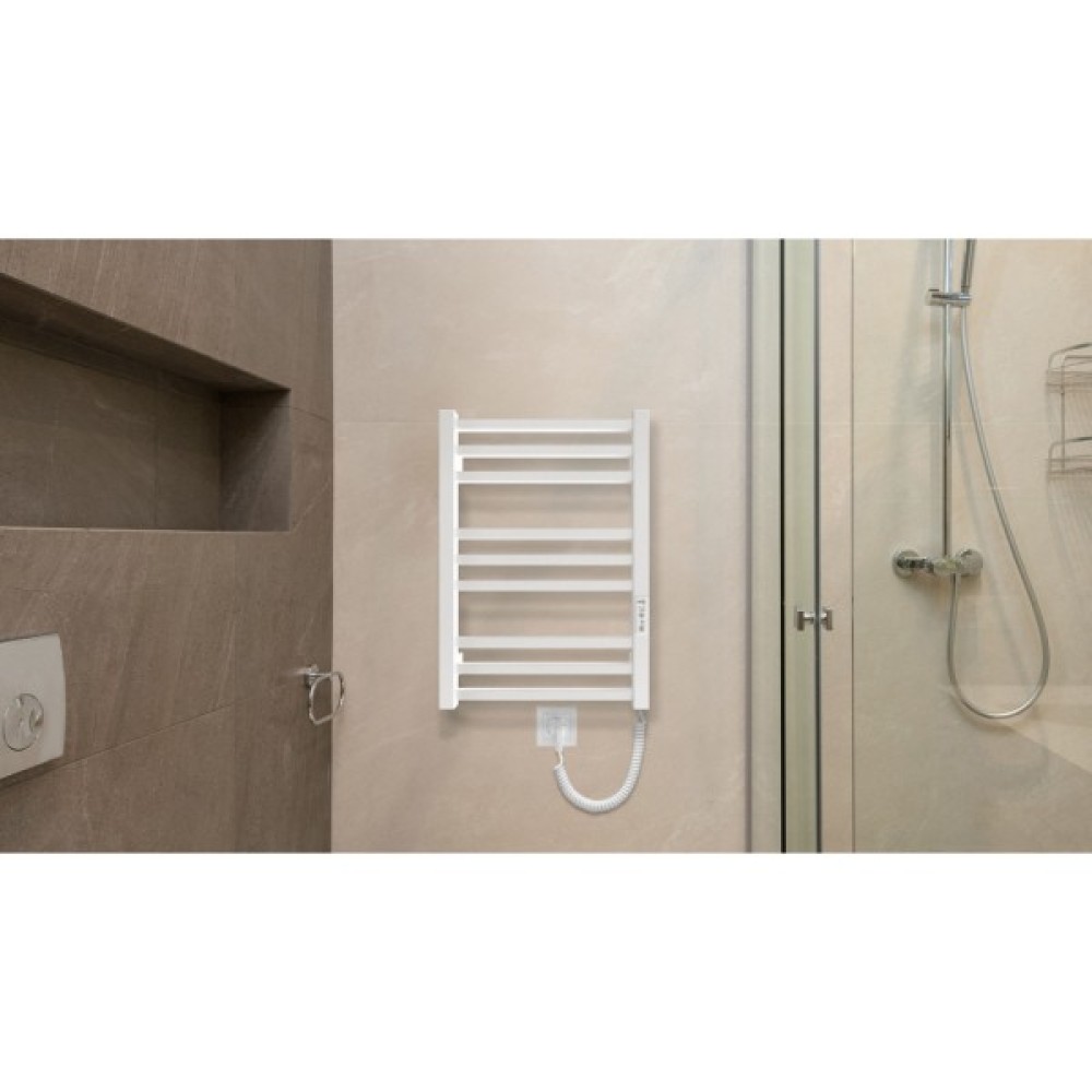 Оснащений таймером-регулятором. Включає в себе приховане підключення. Має 9 ребер та стояки з профільної труби. Варіанти обробки: Чорний мат, Білий мат. Температурні режими таймера-регулятора: 40°C, 45°C, 50°C. Варіанти часу роботи: 3, 6 годин та постійний нагрів.