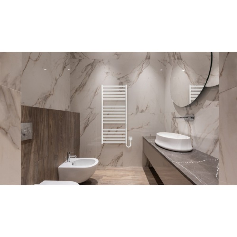 Оснащена таймером-регулятором. Включає в себе приховане підключення. Має 16 ребер та стояки з круглої труби. Варіанти обробки: Чорний мат, Білий мат. Температурні режими таймера-регулятора: 40°C, 45°C, 50°C. Варіанти часу роботи: 3, 6 годин та постійний нагрів.