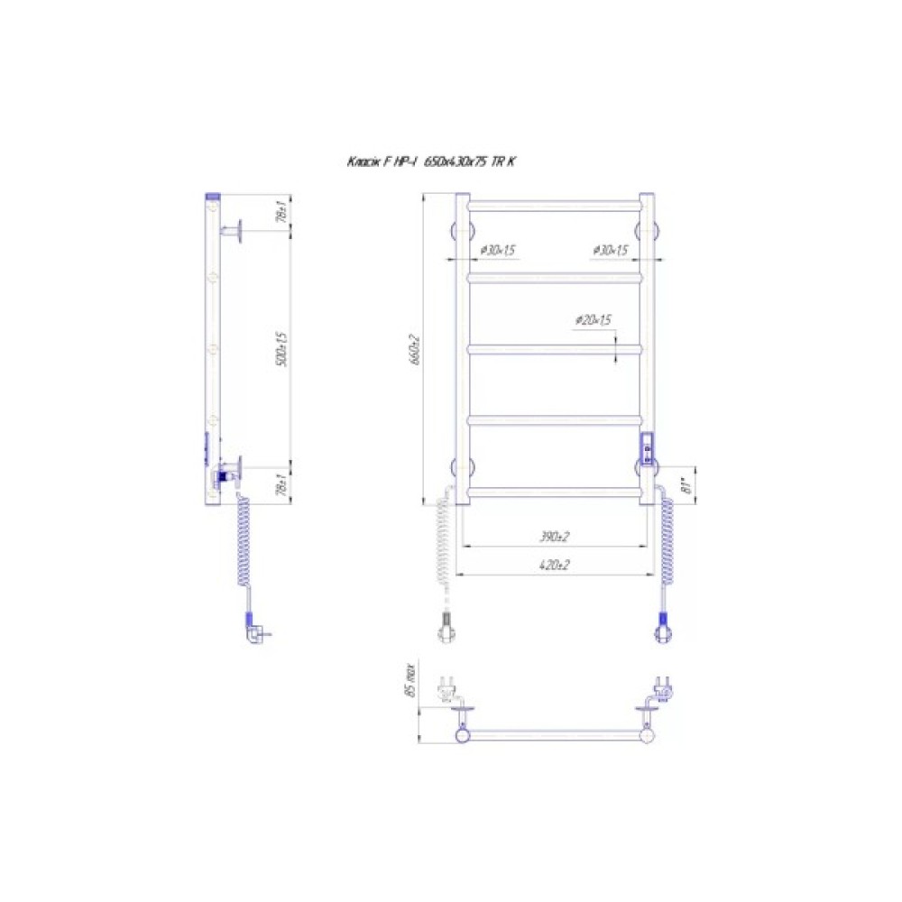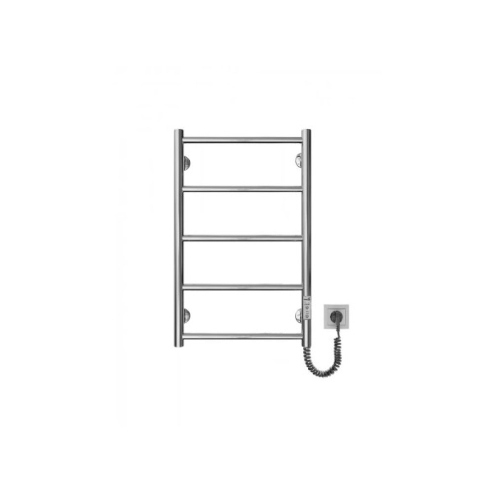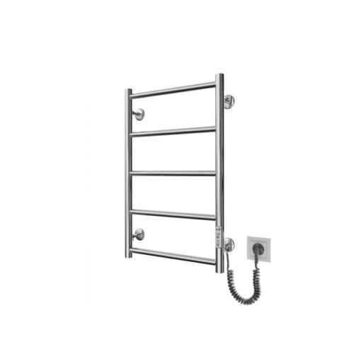 Електросушарка для рушників побутова Класик F НР-I 650х430/75. Обладнана таймером-регулятором і конектором для підключення в розетку з будь-якого боку. Сумісна з комплектом прихованого підключення. Має 5 ребер і стояк із круглої труби. Виготовлений з полірованої нержавіючої сталі без хромування. Температурні режими таймер-регулятора: 40°С, 45°С, 50°С. Варіанти часу: 3, 6 годин і постійний нагрів. Потужність 65 Вт. Додатково для зручності використання можна оснастити навісними гачками.