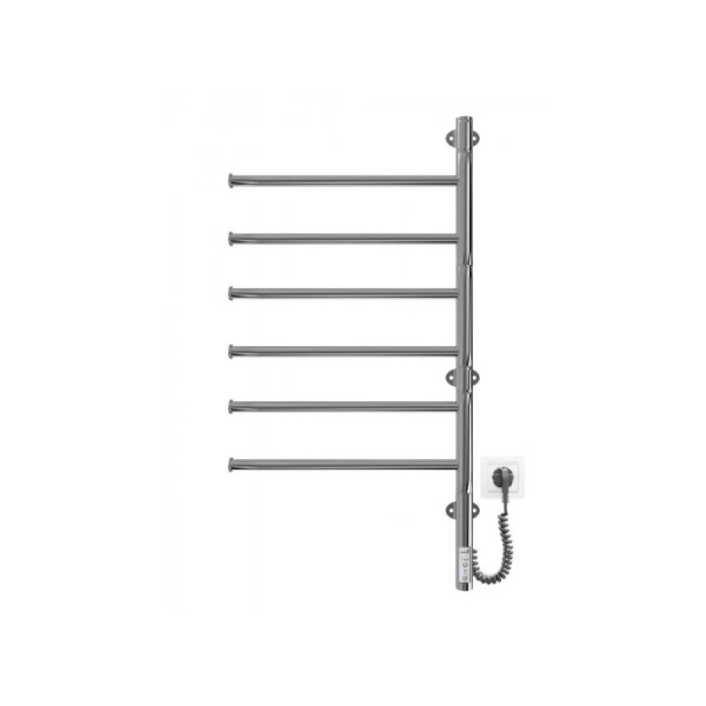 Замість звичного шнура із затискачем у конструкції виробу передбачено роз'єми на обох стійках, що дають змогу під'єднати рушникосушку до блоку живлення з будь-якого боку. Розетка праворуч чи ліворуч? Тепер вам не потрібно запам'ятовувати, з якого боку розташована розетка. Роз'єм для електричних рушникосушок