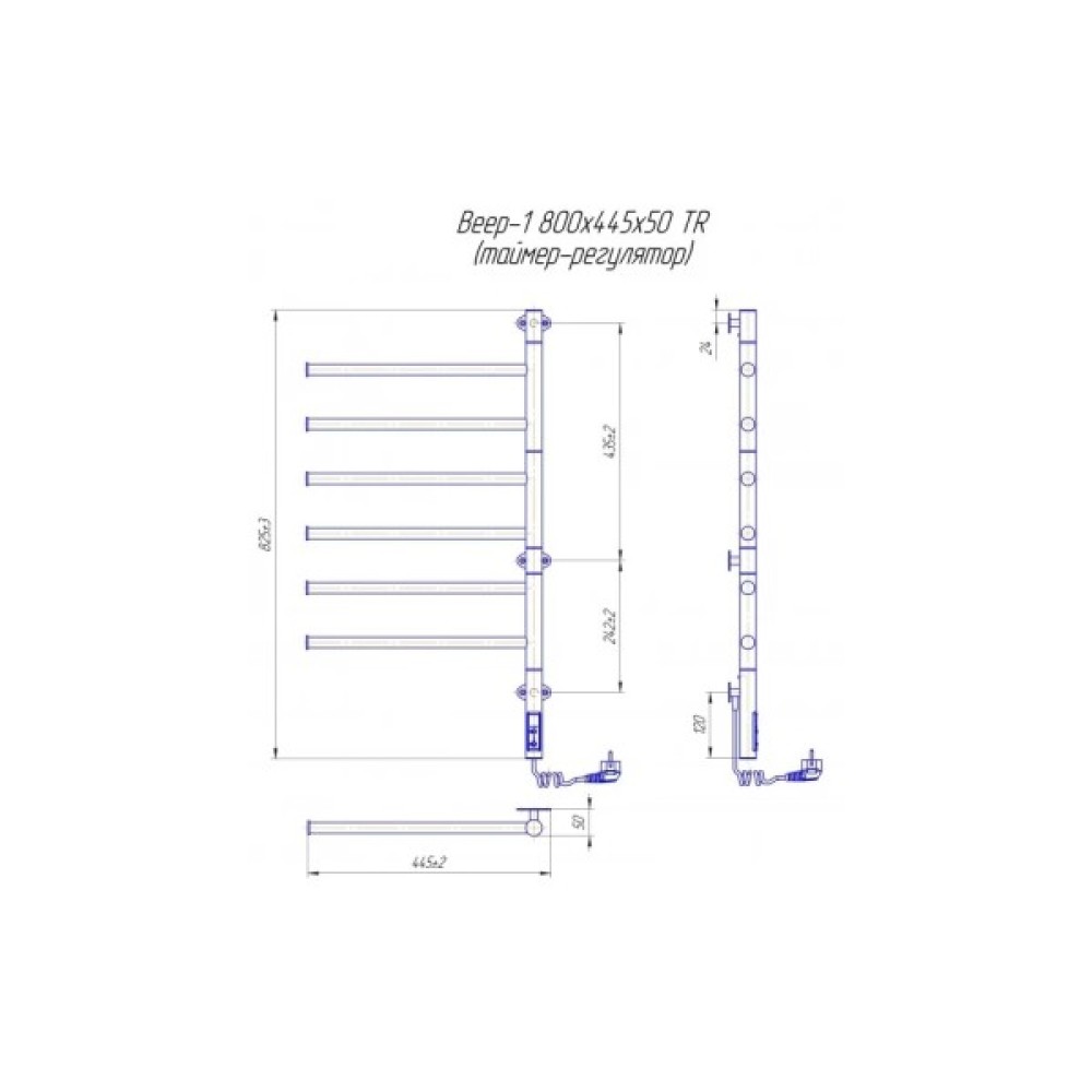 Електрична рушникосушка Віяло ITR, виробництва компанії Маріо, виготовлена з високоякісної нержавіючої сталі. Обладнана таймером-регулятором, який дає змогу встановлювати температуру і час нагрівання рушникосушки. Має рухомі ребра здатні до повороту на 180°.