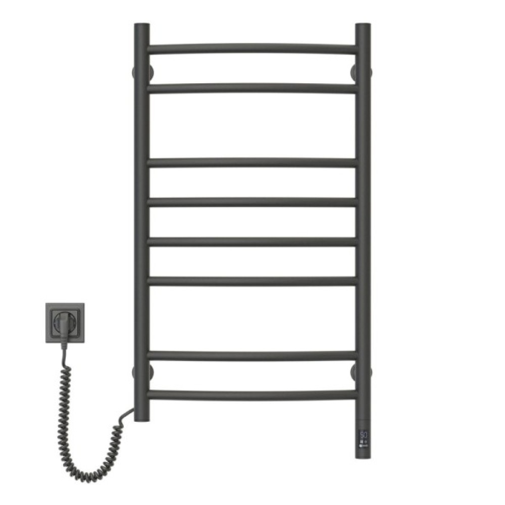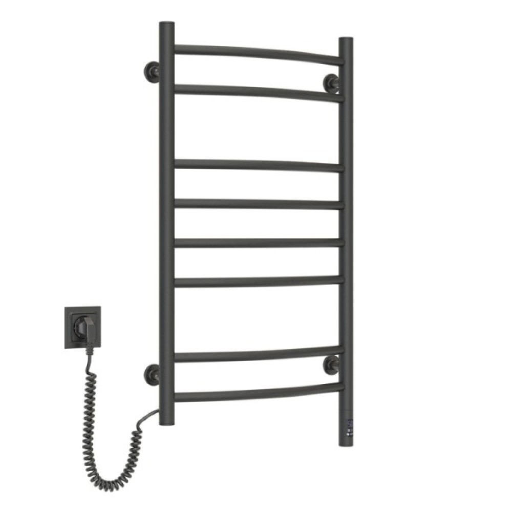 Електрична сушарка для рушників Камелія від українського виробника NAVIN має класичний, елегантний дизайн. Легка округлість горизонтальних перемичок створює відчуття гармонії та затишку у ванній кімнаті. Рушникосушка Камелія 480х800 Sensor (розташування шнура з вилкою – ліворуч) виготовлена з вуглецевої сталі високої якості й міцності. Модель має порошкове покриття (колір – чорний муар). Товщина стінки колекторів (стійок) і перемичок сушарки дорівнює 1,5 мм.