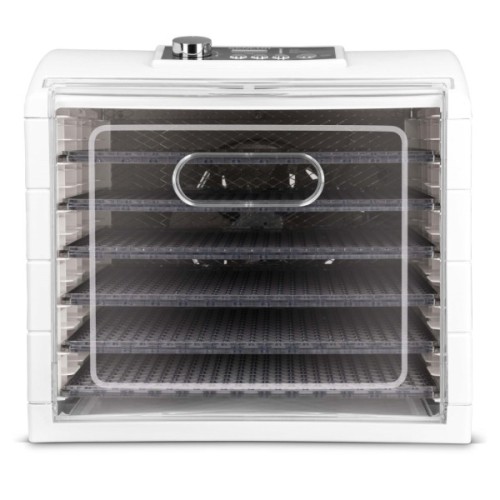 Світлодіодний дисплей з підсвічуванням Електронний таймер для автоматичного вимкнення Розмір сушильного піддону: 330 x 300 мм Вбудований вентилятор діаметром 17 см гарантує рівномірне висушування на всіх ярусах Прозорі дверцята та піддони дозволяють здійснювати моментальний візуальний контроль за станом сушіння Температурний запобіжник від перегріву