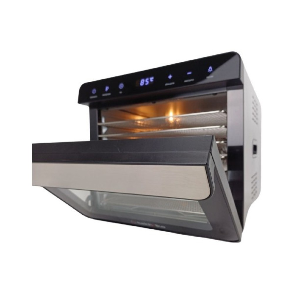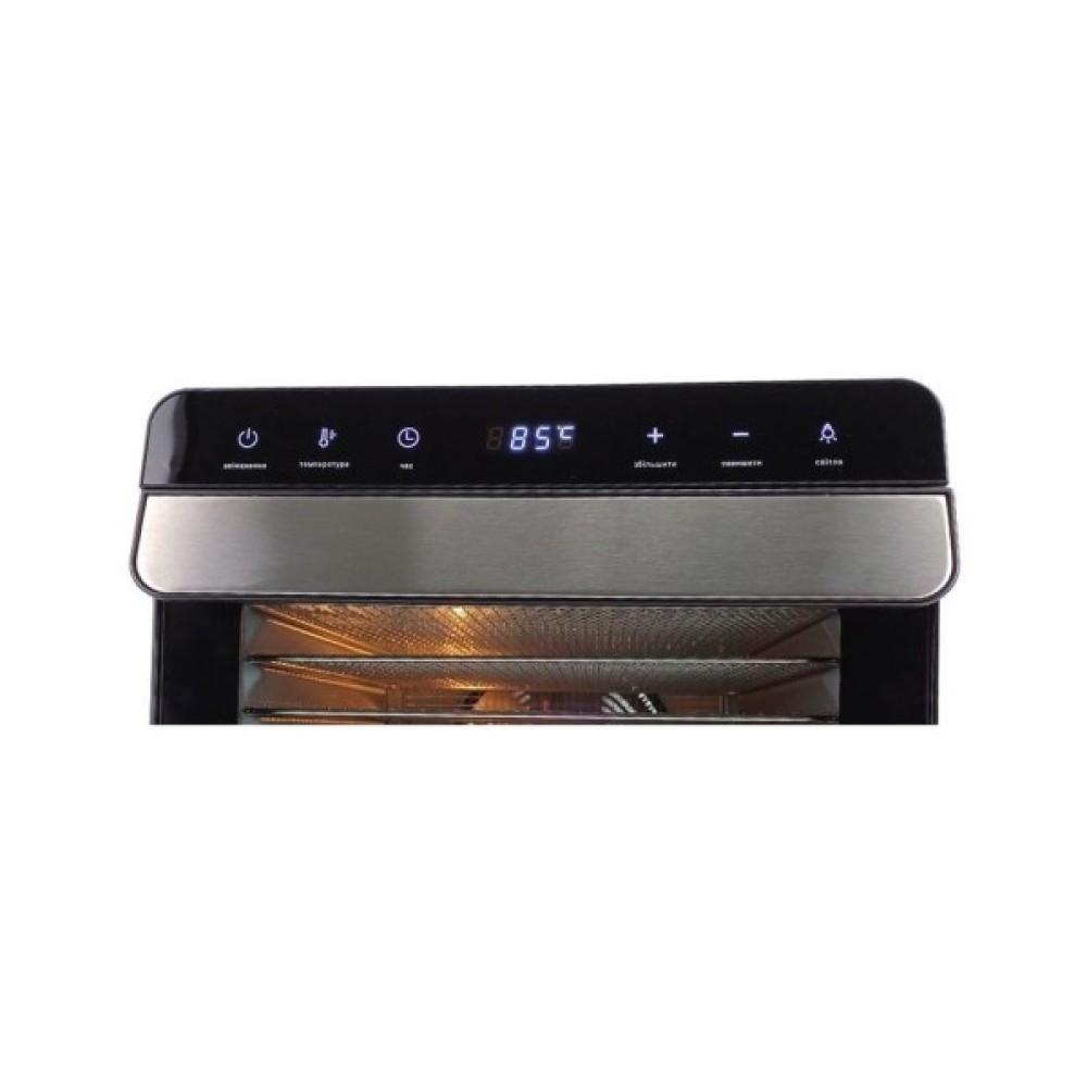 таймер; захист від перегрівання; терморегулятор; дисплей; прозора конструкція для зручності контролю процесу сушіння; ручки для зручності перенесення