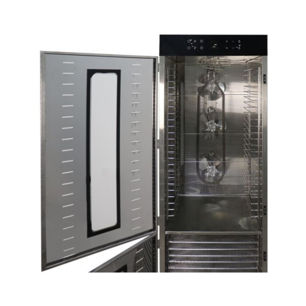 • Горизонтальна система сушіння з 3 потужними вентиляторами в кожній камері: Рівномірне сушіння продуктів.