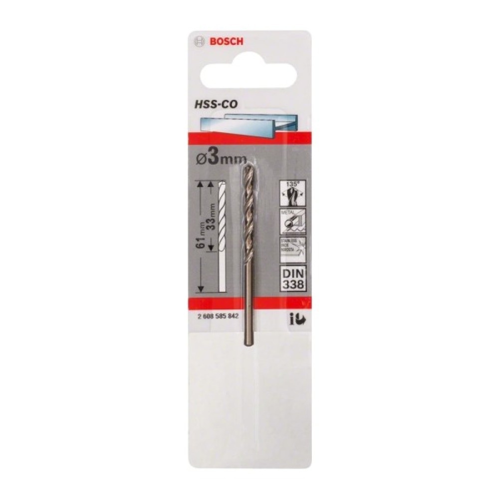 Свердло Bosch по металу HSS-Co, DIN 338, 3х33мм, 1шт (2.608.585.842)