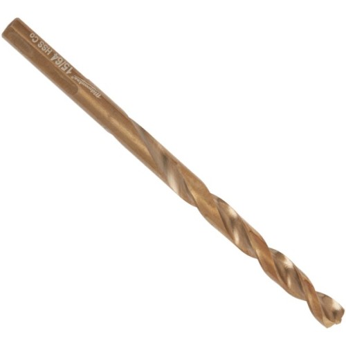 Свердла по металу з міцної та стійкої до нагрівання швидкорізальної сталі з 5% додаванням кобальту. Виготовляється відповідно до DIN 338. Поліровані. Для свердління високолегованих сталей та металів з межею міцності на розрив понад 1000 Н/мм², наприклад, нержавіюча сталь. Нова конструкція ріжучої частини QUAD EDGE з кутом заточування 135° з самоцентруванням та 4 ріжучими кромками: заточка 135° з самоцентруванням для точного та швидкого свердління без "гуляння" при засвердлюванні. Чотири ріжучі кромки для поділу стружки на дрібніші для зниження тепловиділення та більшого терміну служби свердла. Змінний крок спіралі: для швидшого вилучення стружки. Допомагає знизити теплове навантаження та запобігти перегріву свердла. Посилення серцевини свердла: серцевина свердла товще у хвостовику. Посилена серцевина збільшує надійність шнека 3 плоскі грані на хвостовику починаючи з ⌀5 мм для кращого закріплення в патроні та запобігання провертанню.