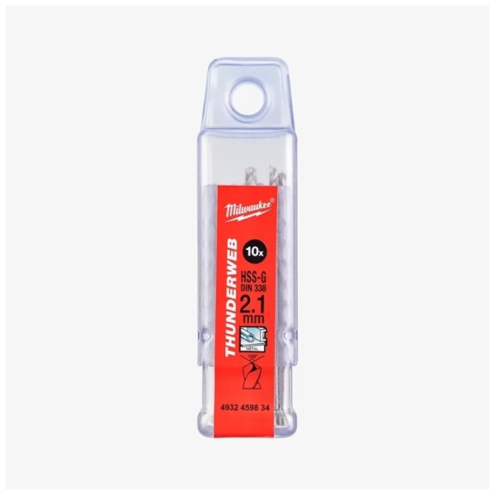 Свердло Milwaukee по металу THUNDERWEB HSS-G DIN338, 2,1х49мм, (10шт) (4932459834)