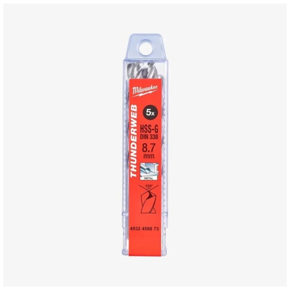 Свердло Milwaukee по металу THUNDERWEB HSS-G DIN338, 8,7х125мм, (5шт) (4932459873)
