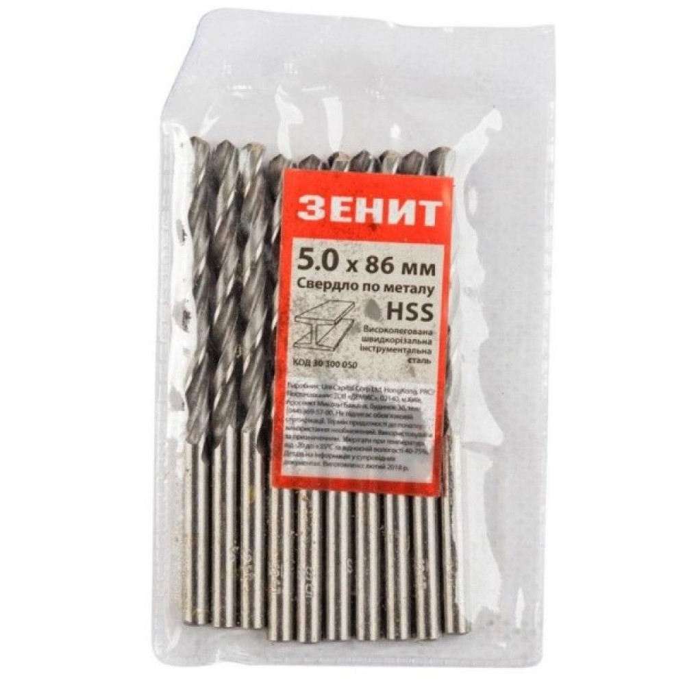 Свердло Зеніт HSS по металу 5.0х86 мм (10 шт) (30300050)
