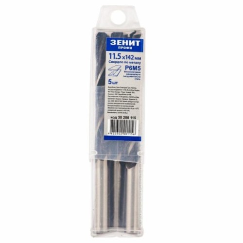 Свердло Зеніт "ПРОФІ" Р6М5 по металу 11.5х142 мм (5 шт) (30200115)